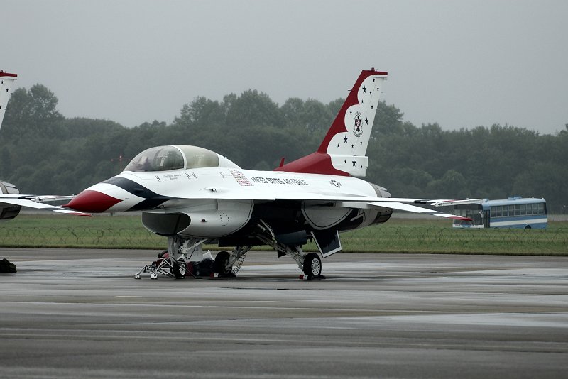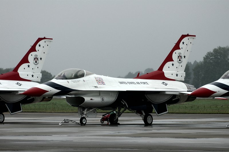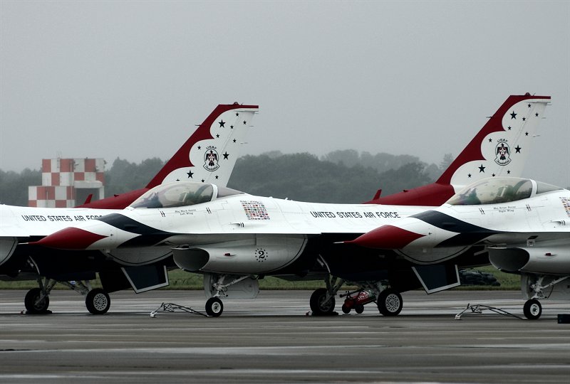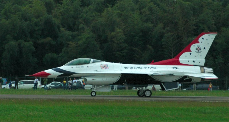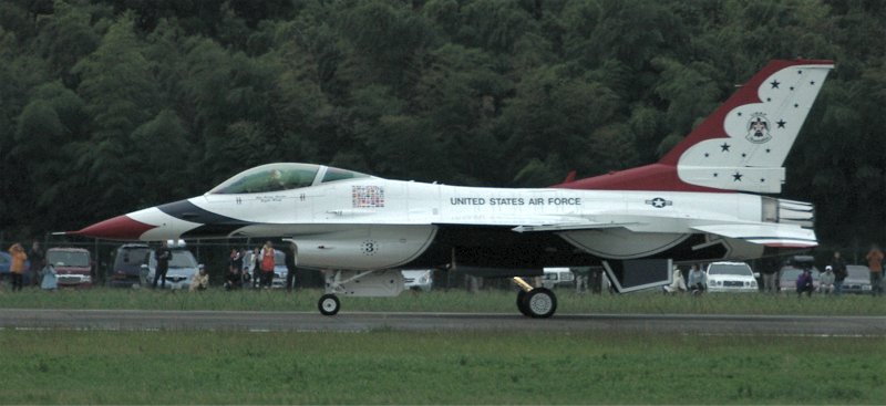 見てのとおり、7号、8号は予備機。8号の位置に展示されていたナンバーなしの機体は、帰投前にナンバーを貼られ、7号機となりました。この機体だけ、F-16D、複座機です。