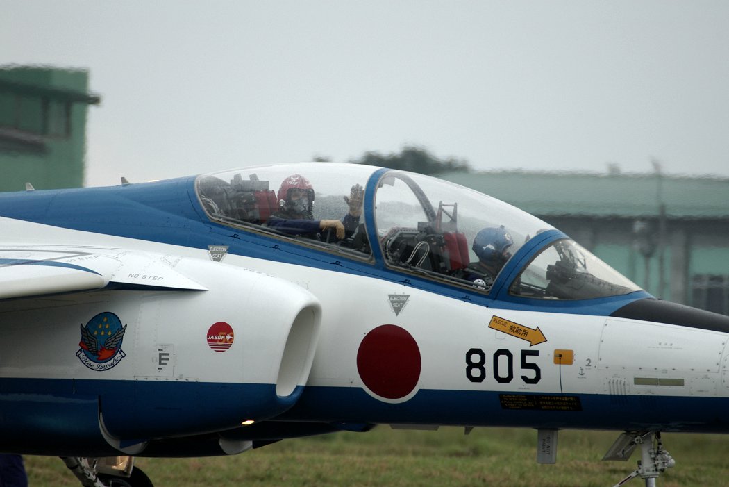 バーズのウォーク・ダウンですが、今回略式だったのか、整備員とともに機体チェックを行っていたパイロットが整備員とともに機体横に整列するところから始まりました。 プリフライト・チェックはテキパキとすすみます。 ブルーインパルスのプリフライト・チェックは機体ごとにそれぞれのペースで進んでいきますが、バーズの場合、すべての動作がチーム全体で同時に行われます。 整備員、パイロットがホントに同時に動くのです。 左上、上、左の3枚はウォーク・ダウンからタクシーにいたるところです。 |