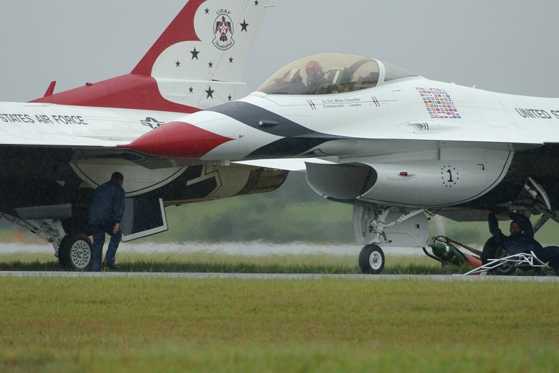航空祭当日は、朝から雨。それでも大勢の人がサンダーバーズを見に来ていました。