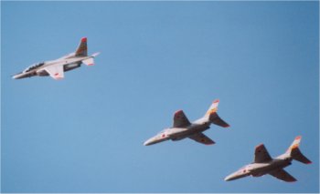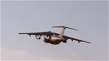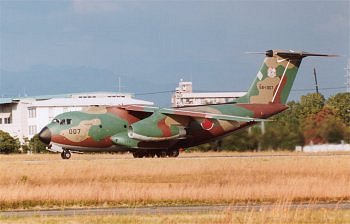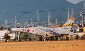 右上は着陸態勢から、滑走路上をそのままローパスしていくT-4。 左は三機編隊からのコンバット・ローリング・ピッチ。実はこれが11月10日の伏線だったのかもしれません。 左下は離陸滑走を始めるC-1輸送機。柵の位置を読み違えると、離陸の瞬間に間に合わなくて、右下のような写真しかとれません。 |