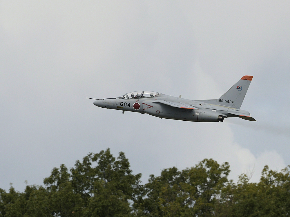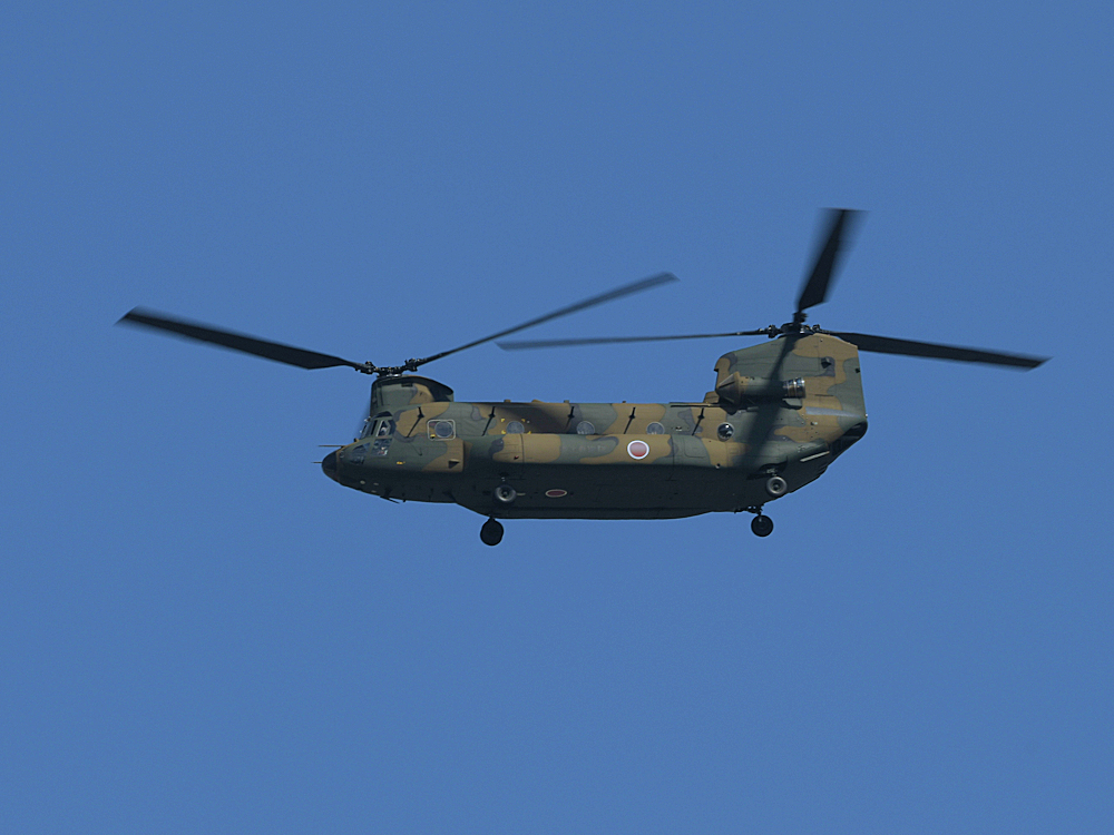基地外周に到着すると、陸自CH-47とT-4が離陸。川崎重工の試験飛行のようです。