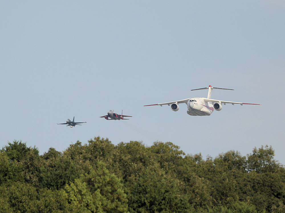 さらに川崎重工からT-4が試験飛行のため離陸。 |