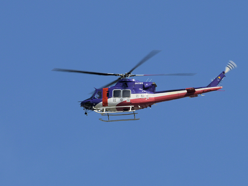 岐阜県防災ヘリコプター ベル412 〈若鮎III〉も離陸。