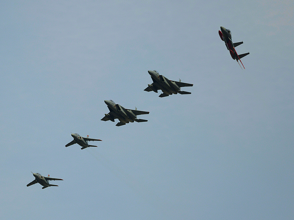 航過後、編隊を組み直している間にF-15Jがソロで機動飛行。、 |