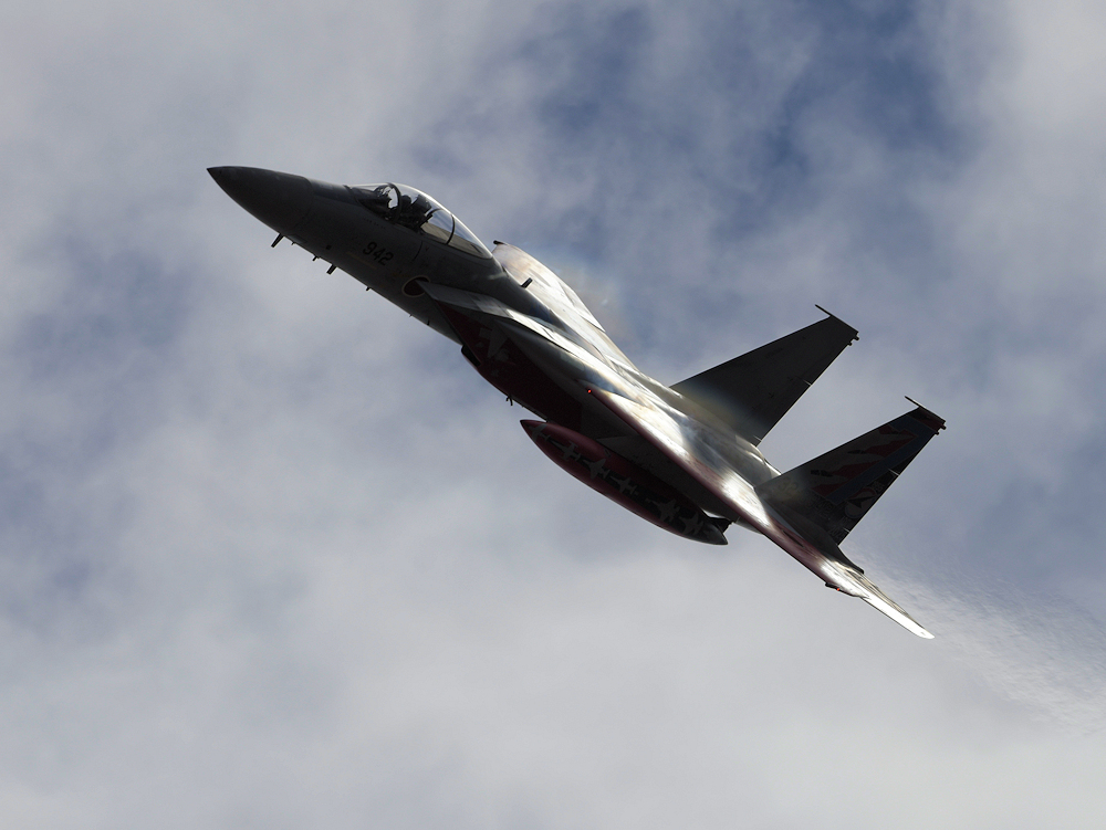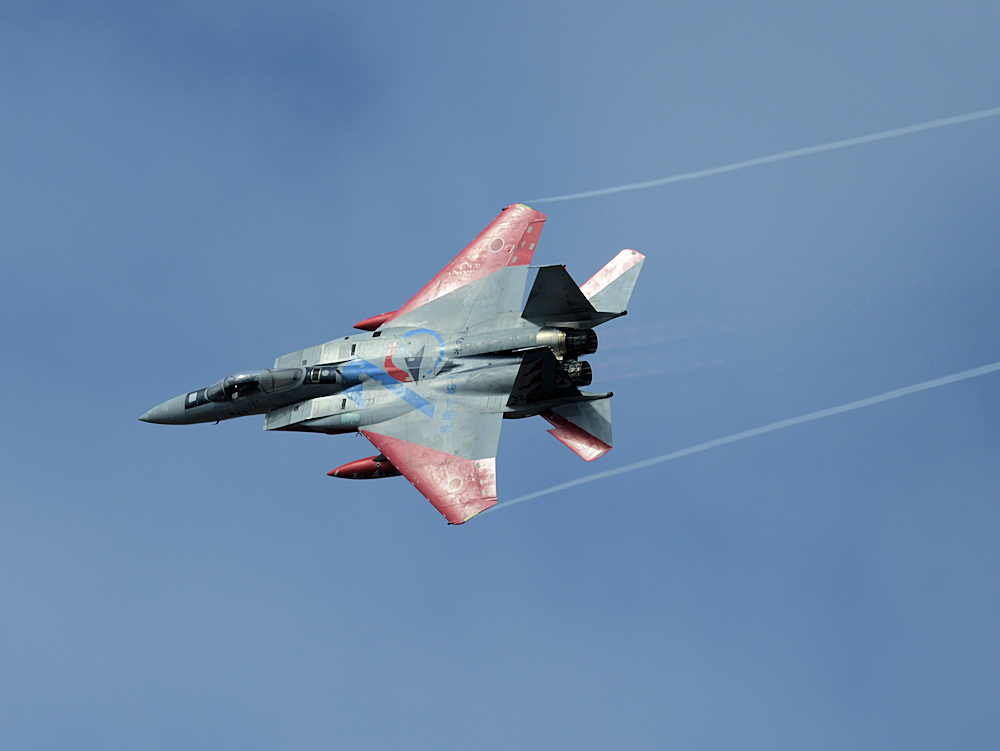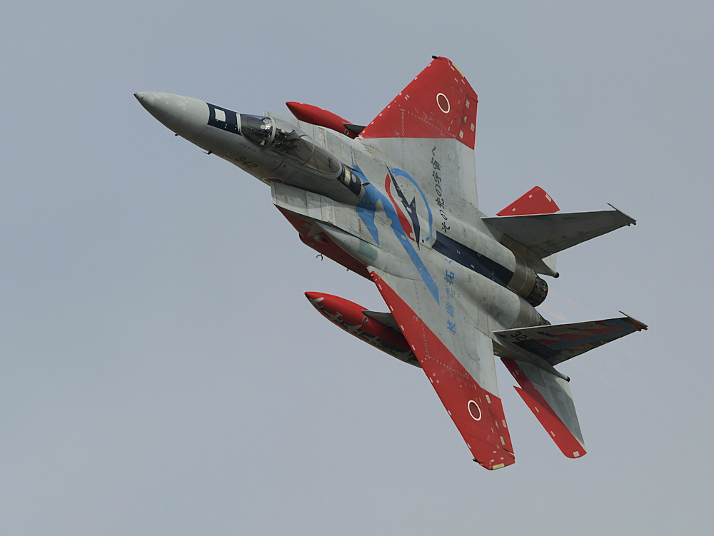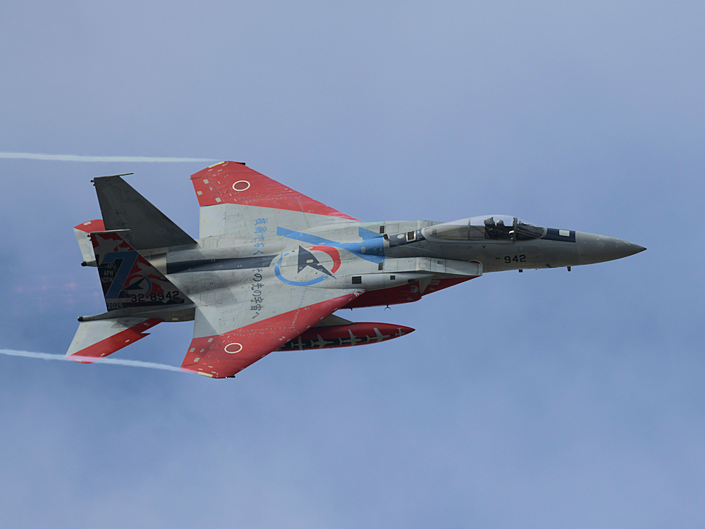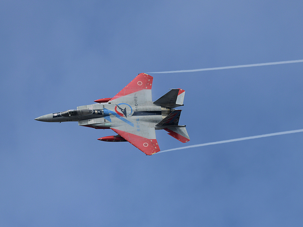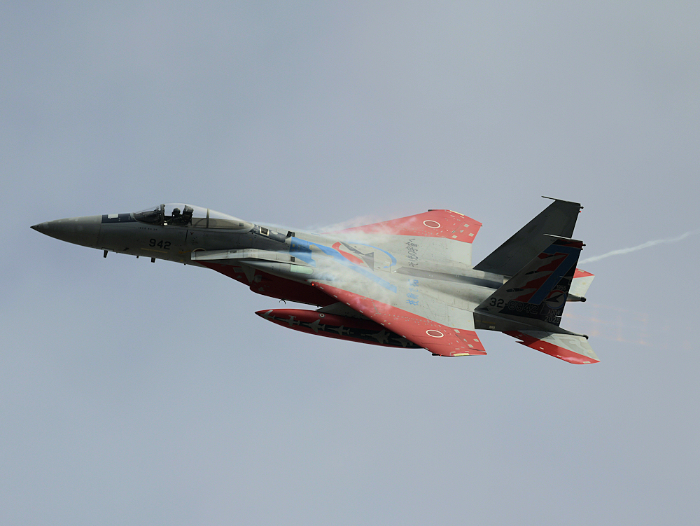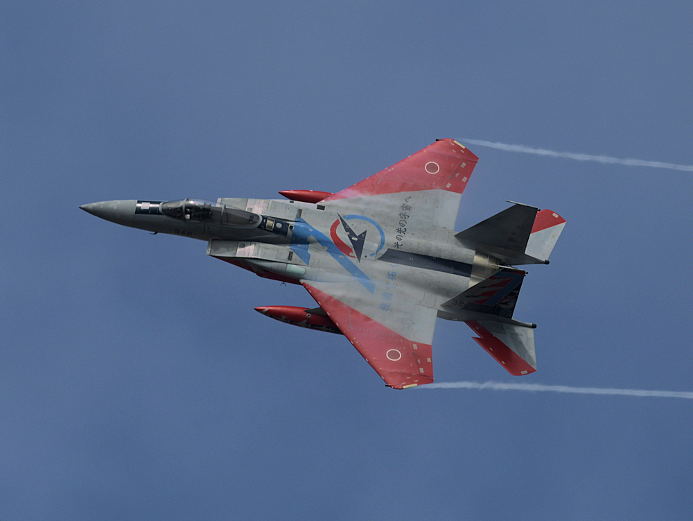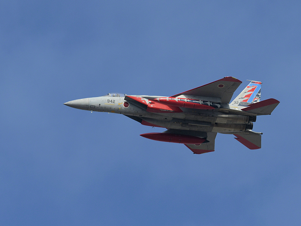 おおむね定刻にF-15Jの記念塗装機が訓練開始。