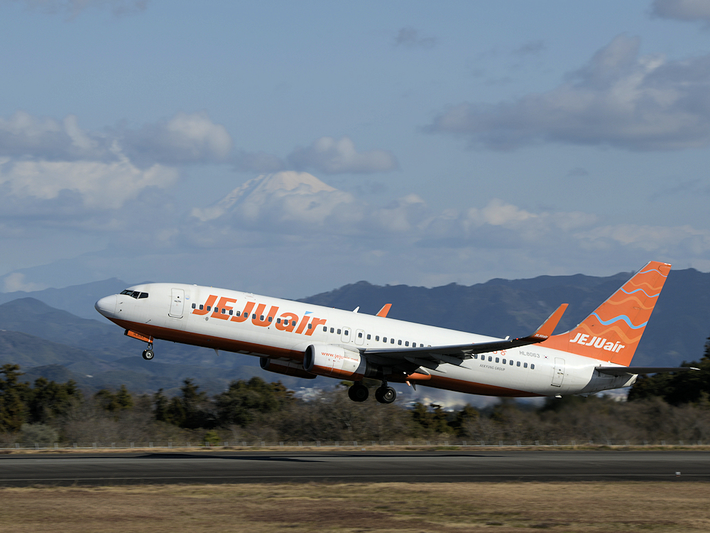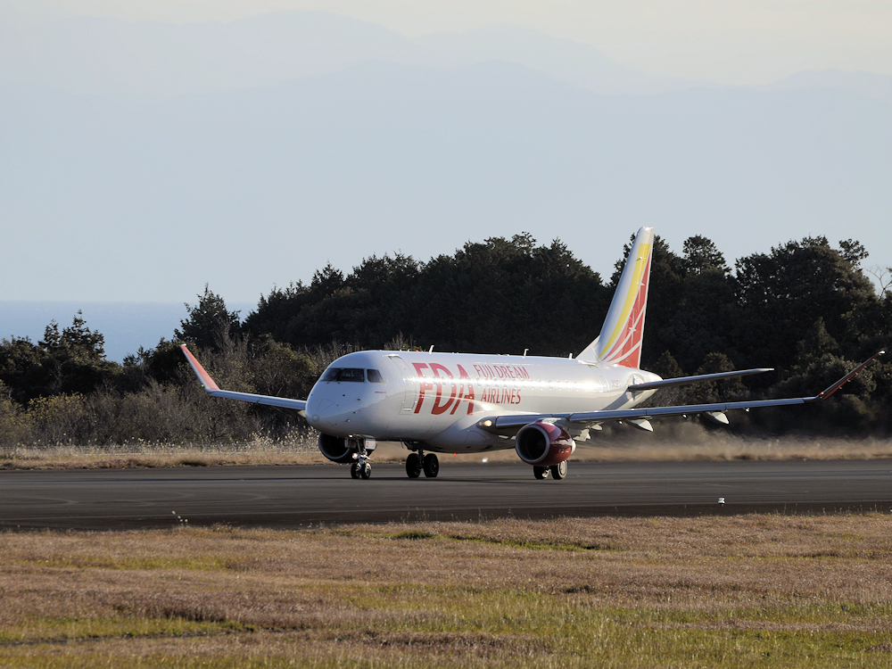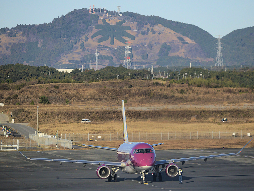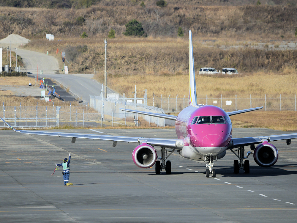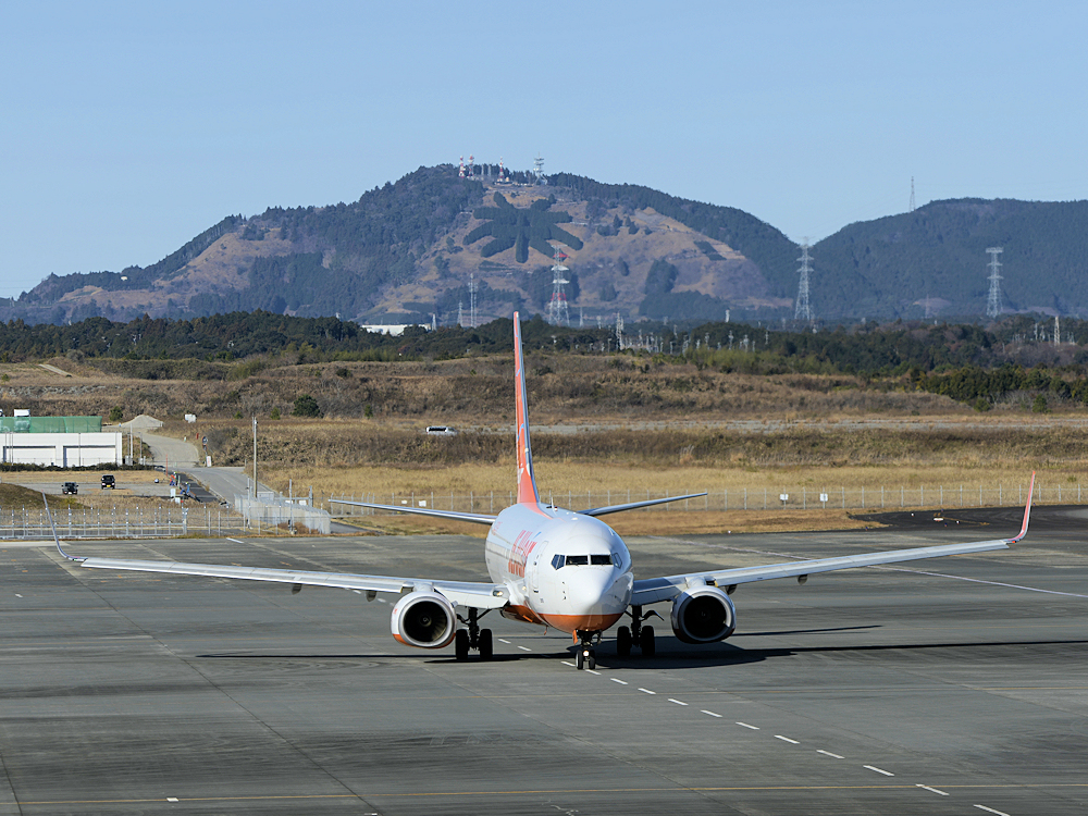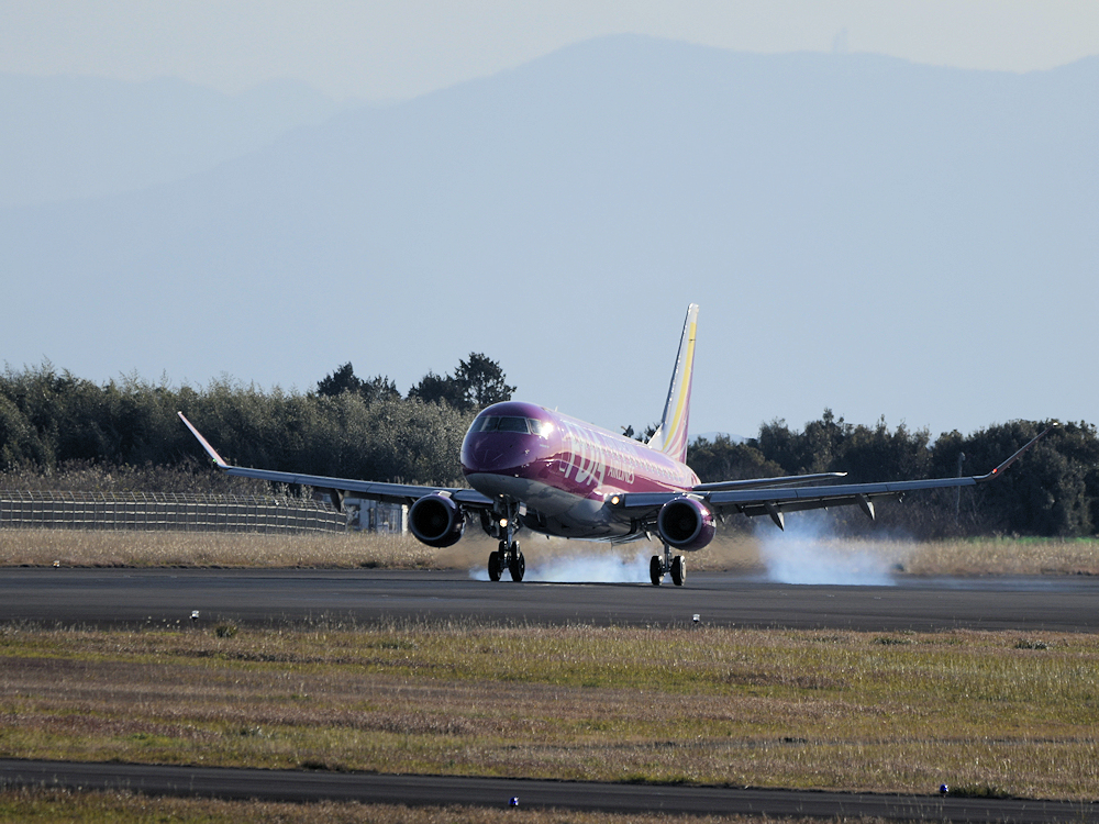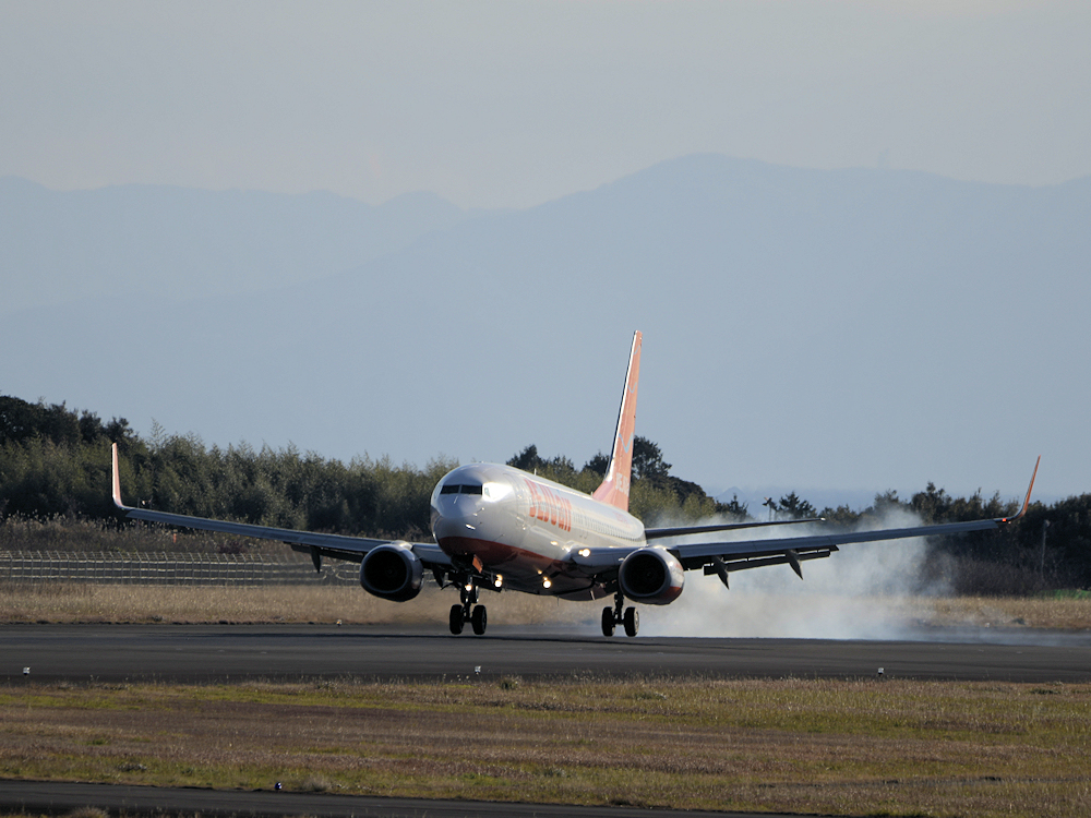 福岡行きの12号機が実質初便。 その後、初日の出フライトを終えた15号機、ジェジュ航空のB737が着陸。 |