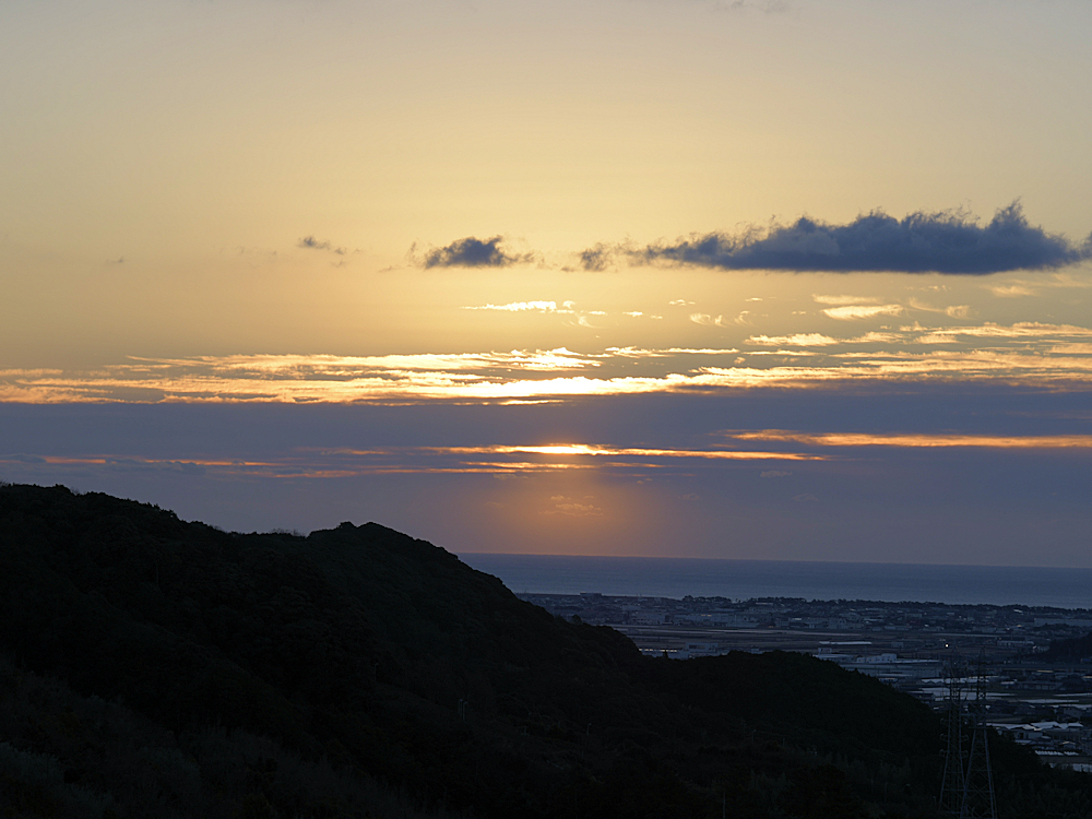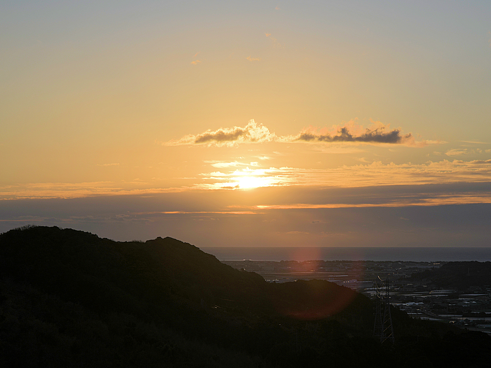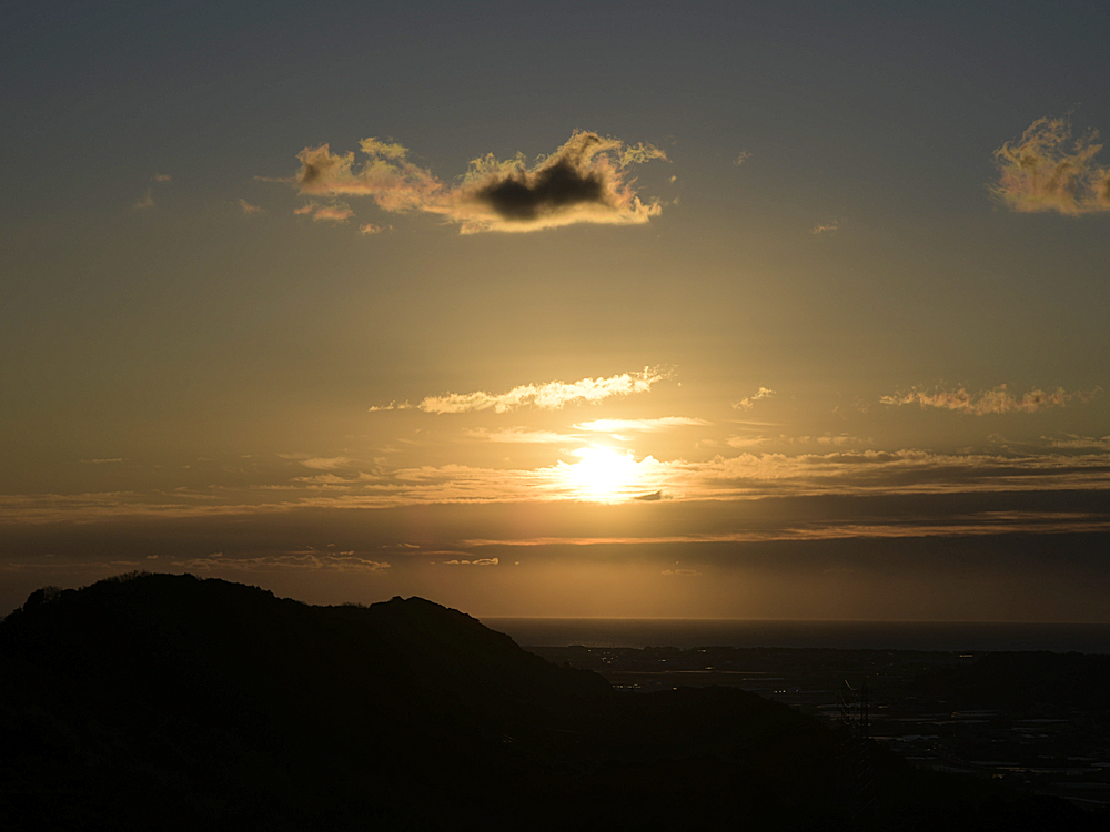 今年は静岡空港は石雲院展望台から初日の出を撮影。 富士山は「頭を雲の...」状態。 |