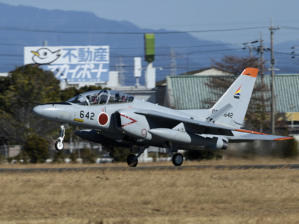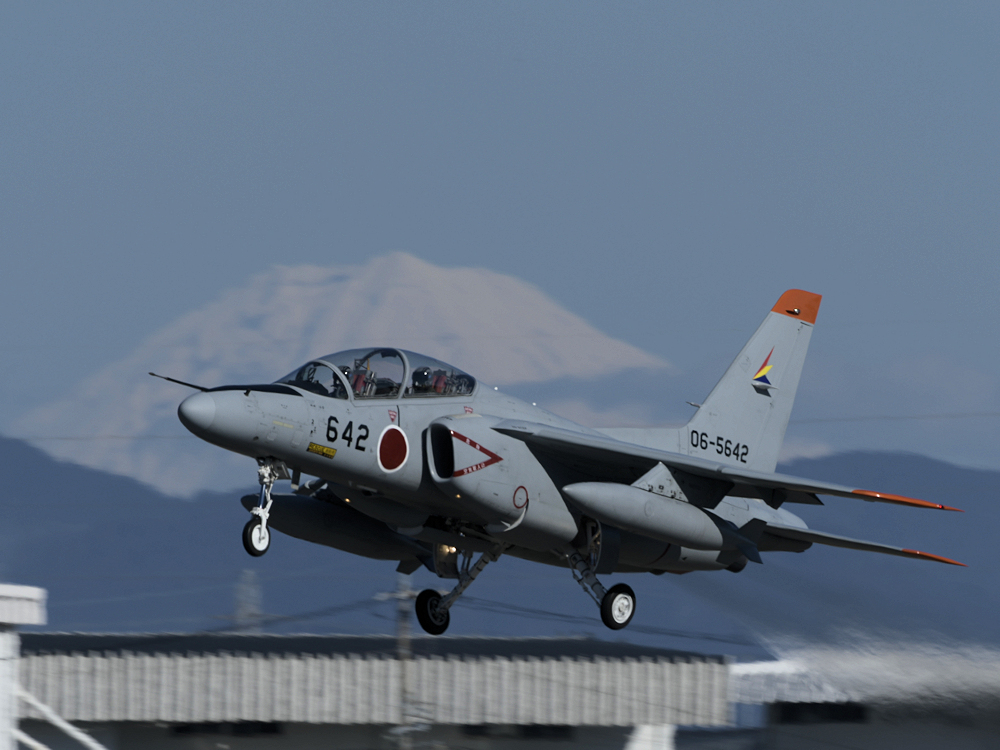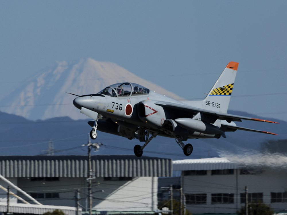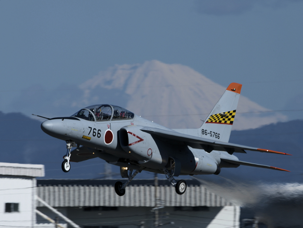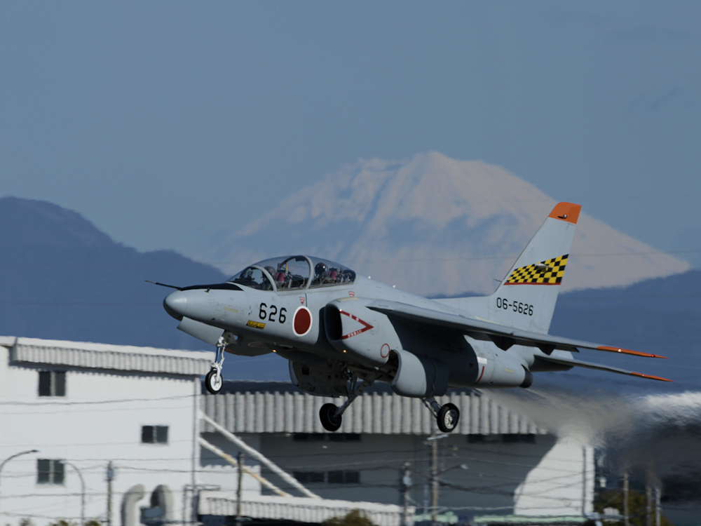この日も富士山が綺麗に見えていたので、富士山をからめてT-4の離陸を撮影。 | ![]() |