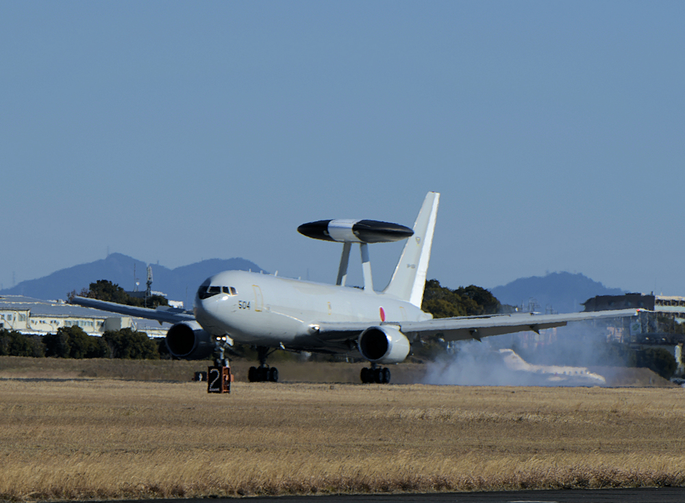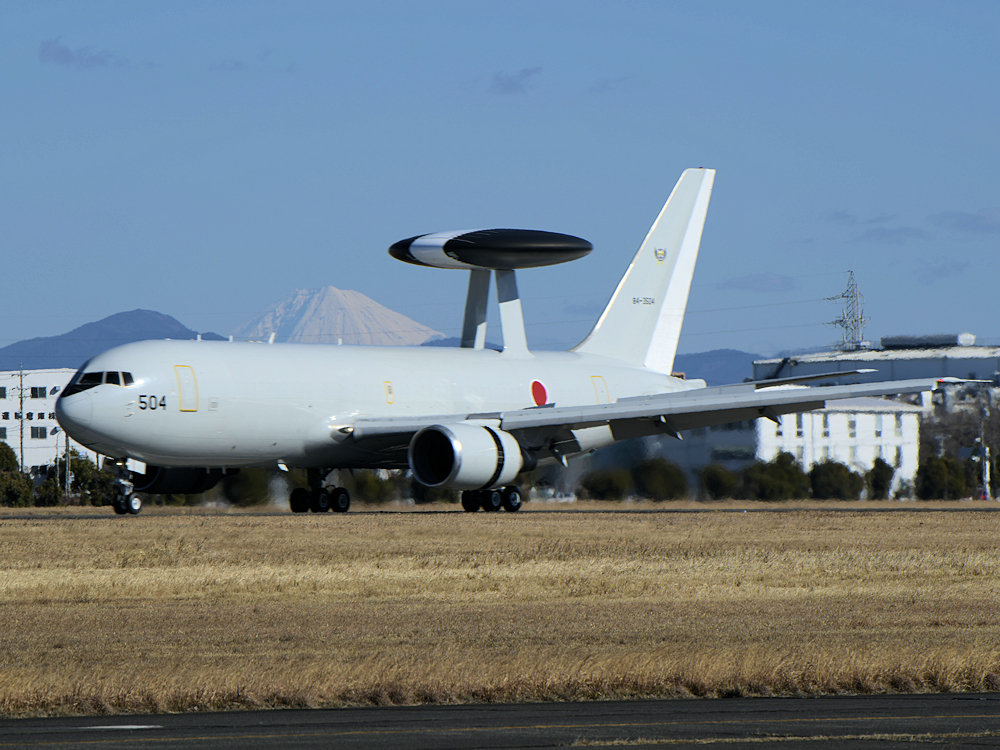 増槽付きは迫力が増すので良いのですが、滑走距離が長いので、この撮影位置からは富士山とは重なりにくく、とか思っていると、入間基地より飛来したT-4はなんとか重なってくれました。 降りてきたE-767も富士山との重なりが撮れました。 |