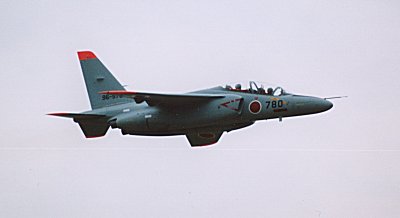 浜松のT-4だと思って撮ったのですが、尾翼にいつものチェッカーがありませんでした。 塗装し忘れ、てなこともないと思うので、「今年の航空祭用の記念塗装をするために部隊マークをはがしてある機体」、と妄想しておくことにします。 「780」と何となく番号も良いし。 |
