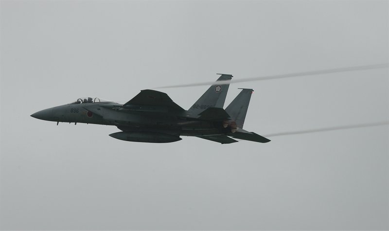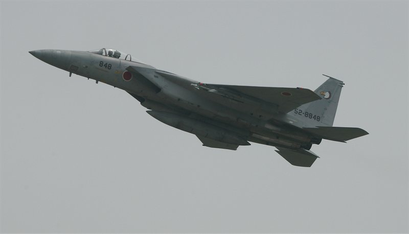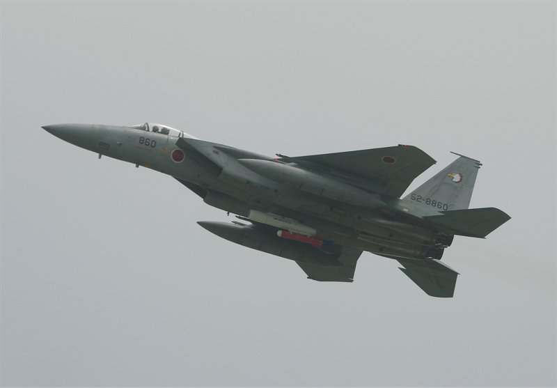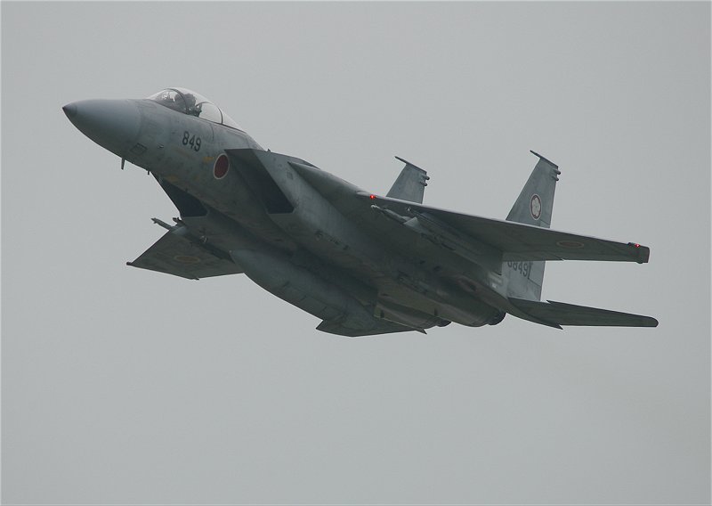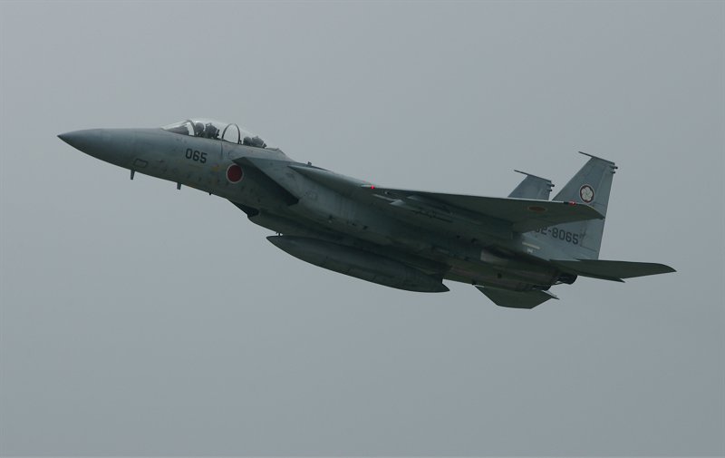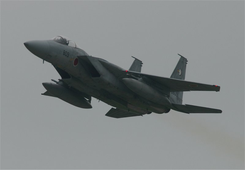 | 念願の百里基地北門に出撃して参りました。 残念ながら、この日は台風接近の影響で、雲が低く、午後からは本格的に降り出しましたので、半日だけの張り込みとなりましたが、戦闘機系の期待を堪能させていただきました。 また、視程も悪かったので、写真はほとんど離陸時のものです。 前述のような状況ですので、派手な離陸をしてくれたのは一機だけ(写真上、2枚)。305飛行隊の機体です。このあと、すぐに雲の中に消えてしまいました。 その305飛行隊の機体からF-15DJ(左下)と、F-15J(右下)。パイロンをご覧ください。実戦部隊なのです。 |