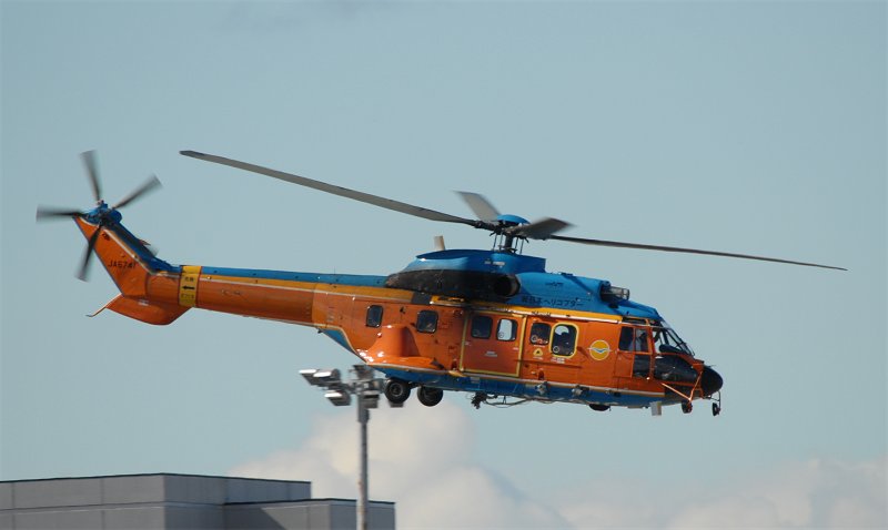 ユーロコプターから3機種。新日本ヘリコプターのAS332L(左上)、中日本航空AS350B(上)、EC130(右上)