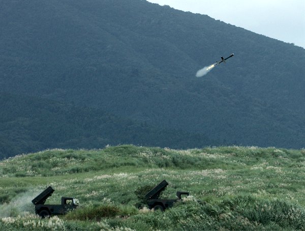 近代戦の象徴ともいえるミサイル。 左は軽装甲機動車から発射された、01式軽対戦車誘導弾。 近代兵器で重装備した比較的少人数の敵と市街地などでの交戦する可能性を真剣に考慮しなければならない御時世を象徴しているような気もする一枚です。 左下は96式多目的誘導弾の発射シーンです。 |