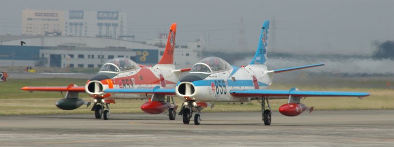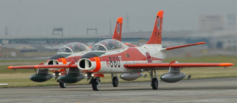 展示飛行を終え、駐機場へと戻るT-1B(下)。