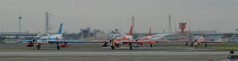 それでも、T-1Bが記念塗装機を先頭に展示飛行のため、我々の前をタクシーしていきます。(上2枚)