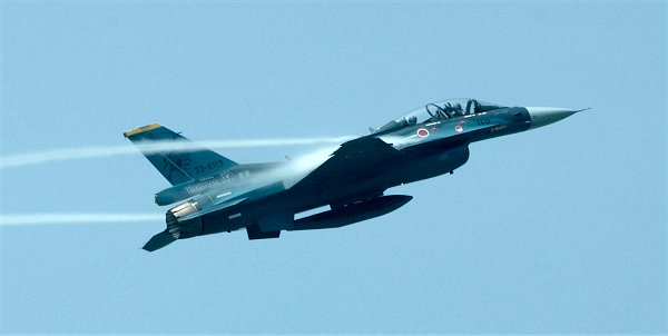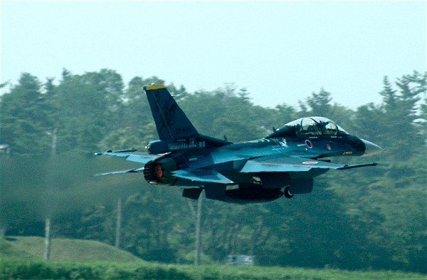 しかし、山側はというと、霧も少なく、まわりこんだF-2がくっきりと。 雲を引きながらの高機動飛行。 実は、この塗装のF-2、量産機の飛行を見るのは今回が初めてだったりします。 |