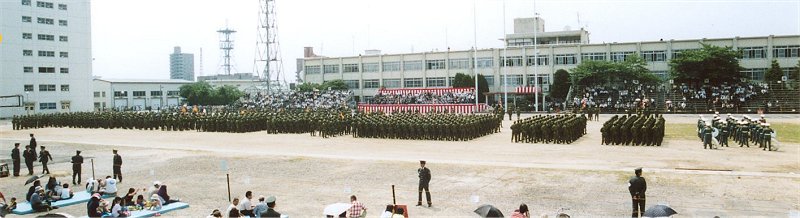 前日の天気予報もなんのその。おおむね晴れ上がったなかで、守山駐屯地の基地開放が行われました。 例年、秋に行われ、他の航空イベットとかぶってしまうため、なかなか行けないのですが、今年はありがたいことにこの時期となりました。 上の写真は見せ場の一つ、観閲式です。このあと各部隊の車両が紅白の雛壇の前を行進していきます。 観閲式を締めるのは、明野基地のヘリ部隊です。左写真のAH-1Sが3機とUH-1Jが2機、フライバイしていきました。 |