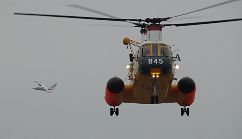 そして、リモートの展示飛行をはさんで、V-107とMU-2による救難展示(右上)