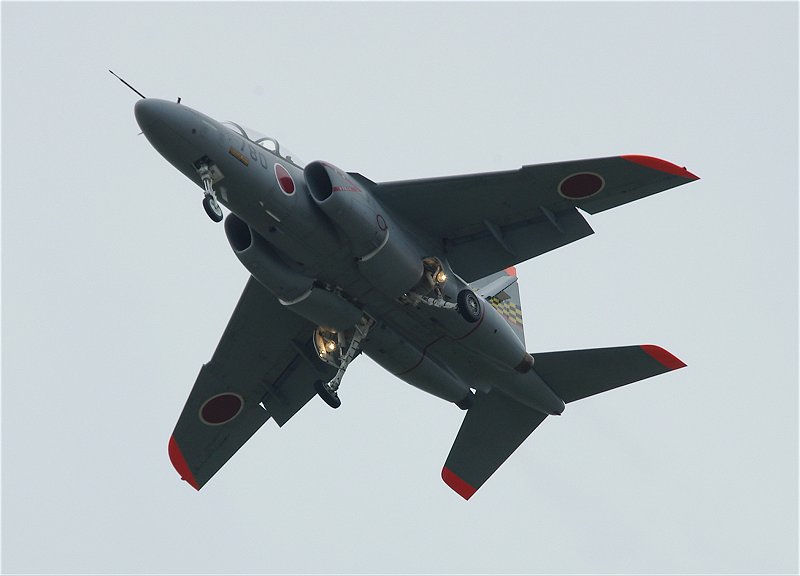 よく見るT-4ではありますが、普段は「見せるため」に飛んでいるわけではありません。今日は飛び方も一味違います。