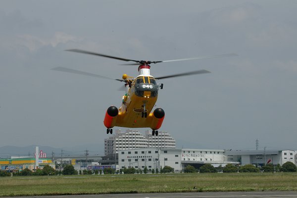 8日、午前中は救難展示。V-107のみによるデモ(上2枚)でしたが、さすが近いのが取り柄の広報館。なかなか迫力があります。