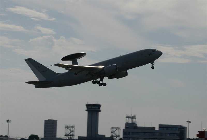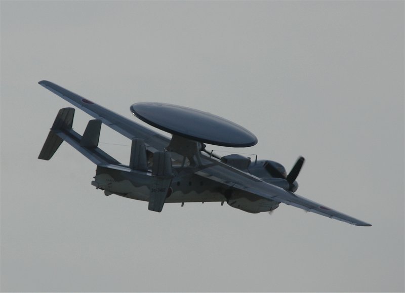 中部国際空港開港に伴い、上空の交通量が激減したため、今年の航空祭からはおおむね自由に空が使えます。 しかも、岐阜式(*注)とありがたいかぎりです。 さらに、この日のためにとってあったような快晴。 それでも、時間が来れば祭りは終わり。 地上展示機が次々と帰っていきます。 左上:E-767 浜松基地へ。 上:E-2C 三沢基地へ。離陸時に翼をふってくれました。 左:P-3C 厚木基地へ。 |