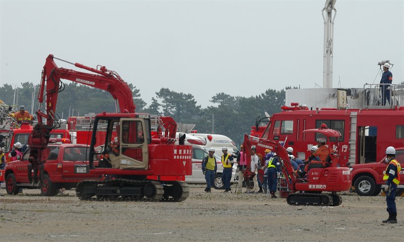 左上は崩落したトンネルからの救助活動に向かう、土木車両。