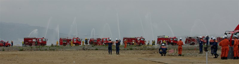 この上空を四機二群に分かれたヘリが放水しつつ、ローパスしていきます。