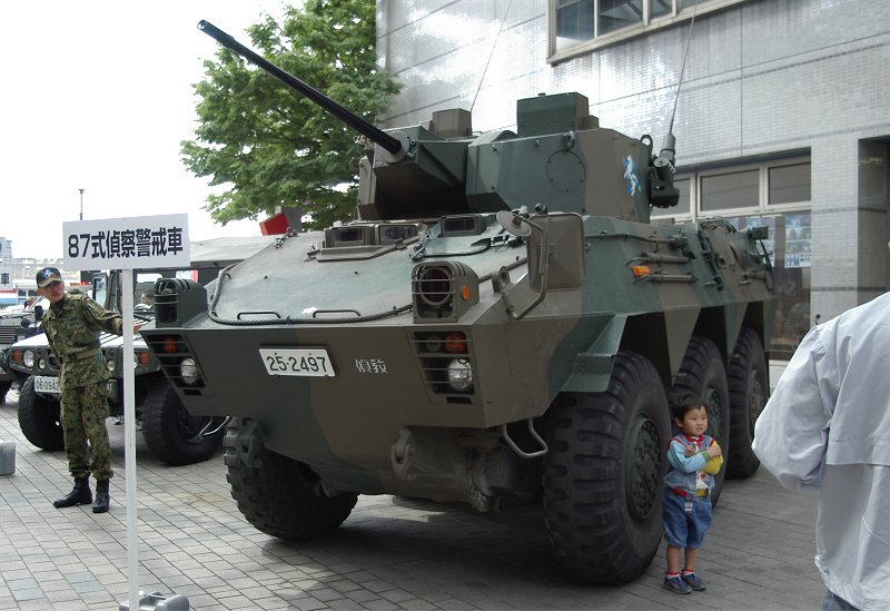 展示されていたのは、軽装甲機動車、高機動車、右下写真の87式偵察警戒車の3両です。