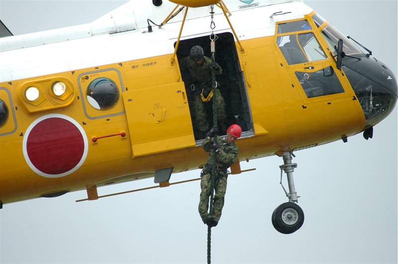 そう! 悪条件下での活躍にそなえ、日夜訓練をしている救難隊は雨ごときではひるまないのです!