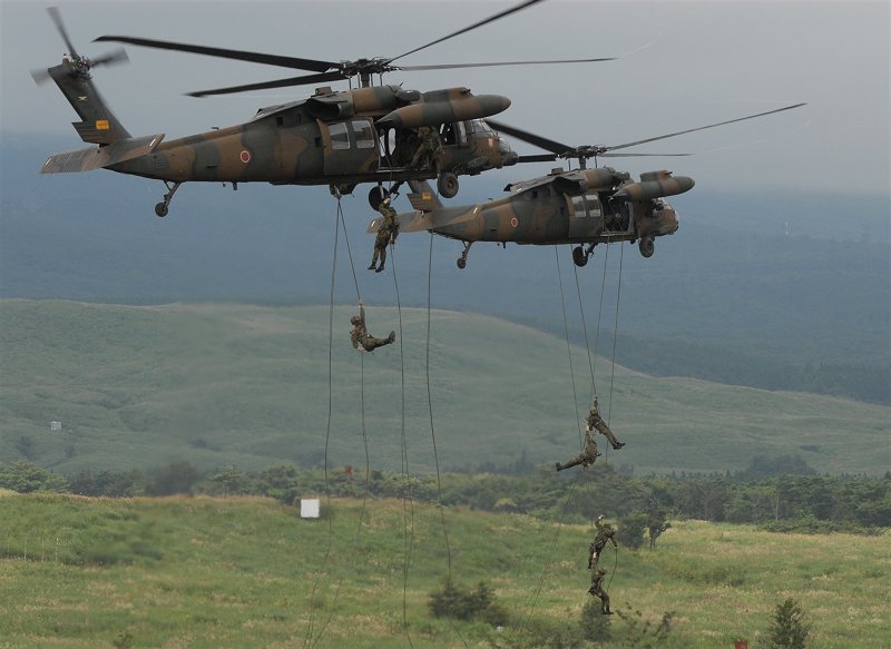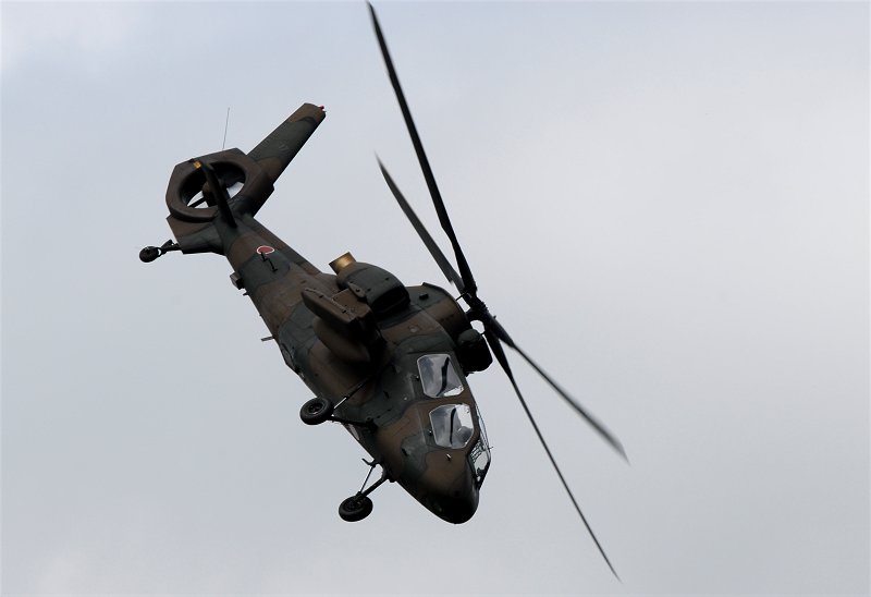 その機動性で人気のあるOH-1(上)。今回も少しだけその性能を披露。