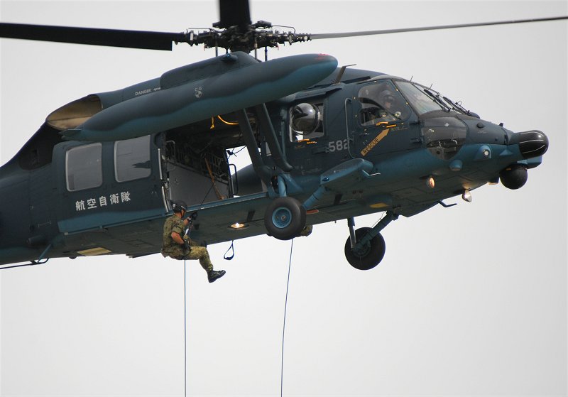 上右:そして、UH-60Jの機動飛行展示。豪快です。