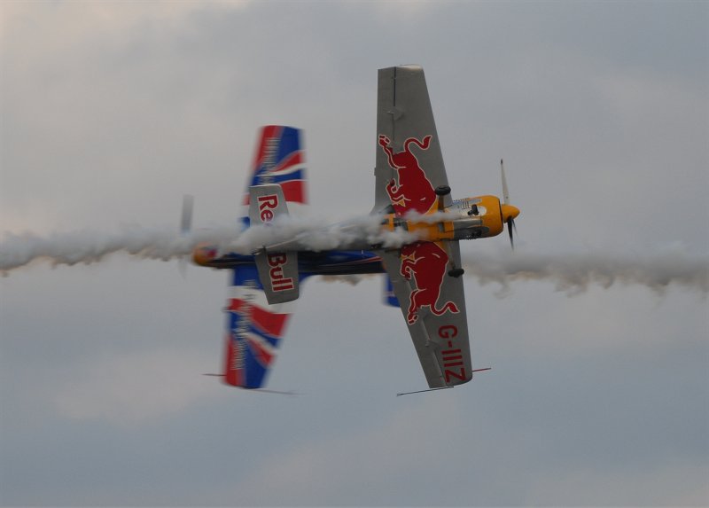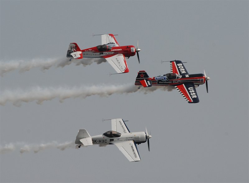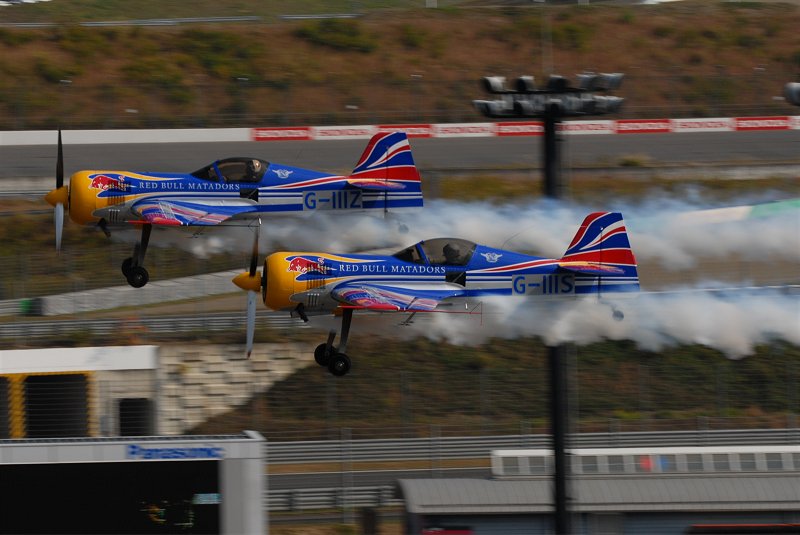 オープニングに引き続き、Su-26を駆るイギルスのチーム、「マタドールズ」が基本演技を説明するエデュケーション・フライトを実施(上3枚)。