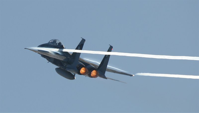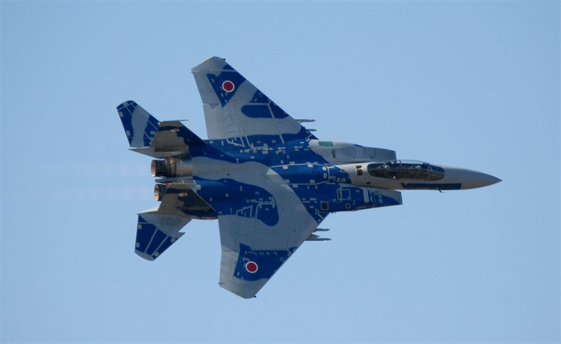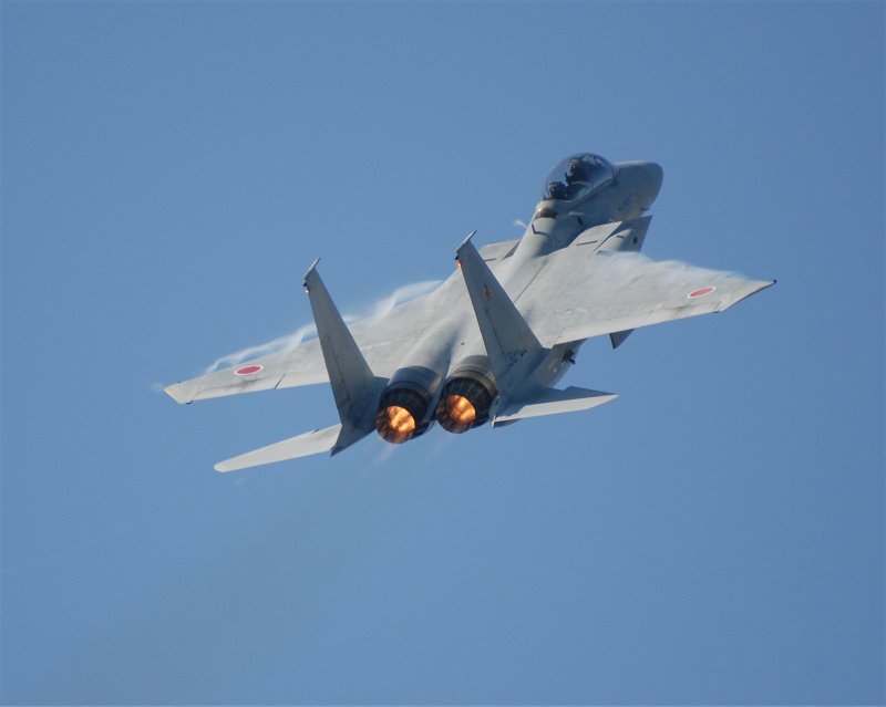 オープニング・フライトに続き、教導隊のF-15DJによる機動飛行。(左、上、下2枚)