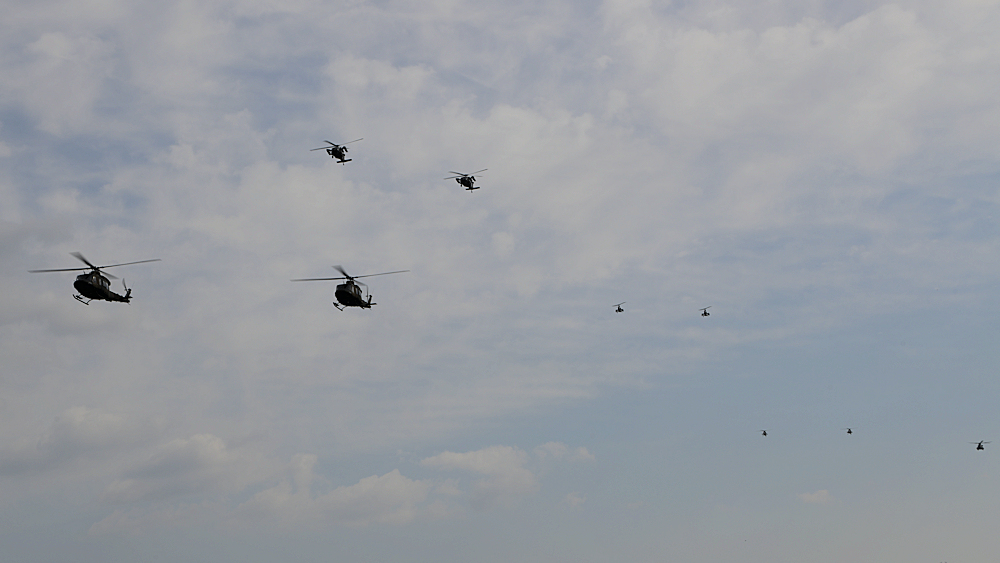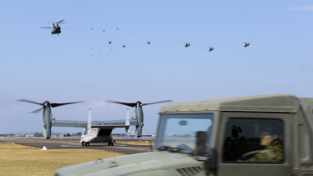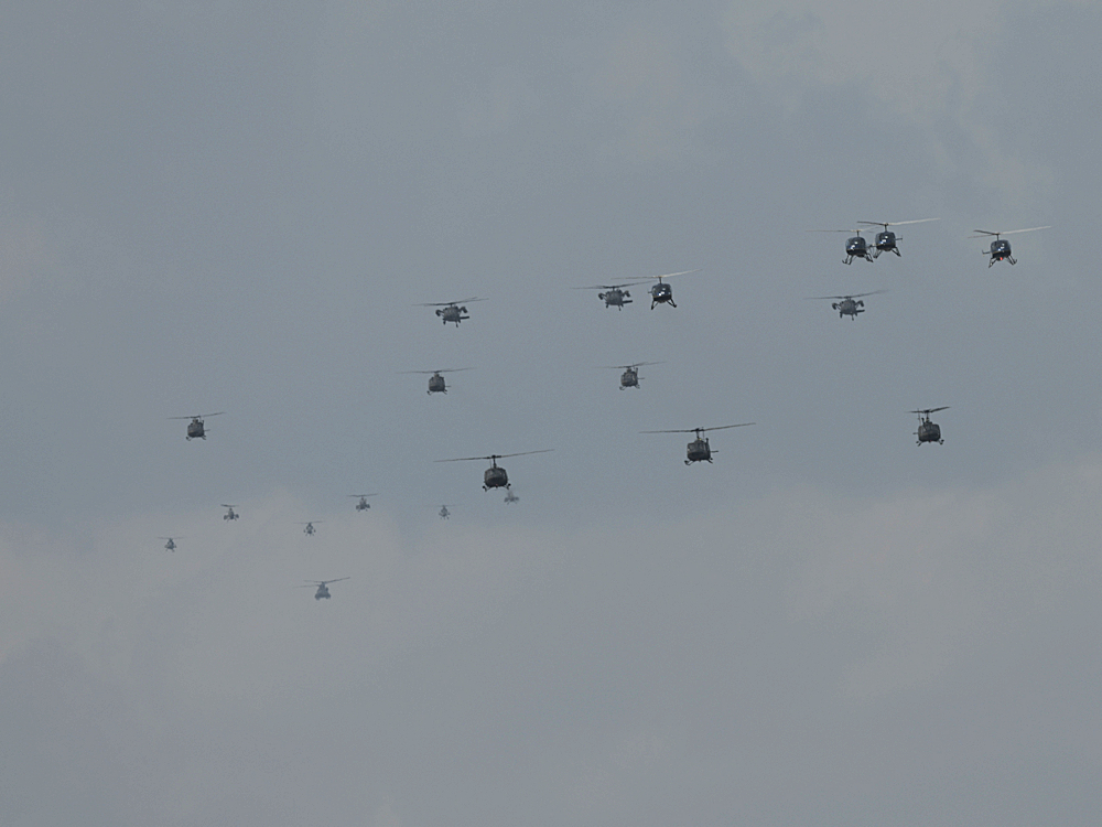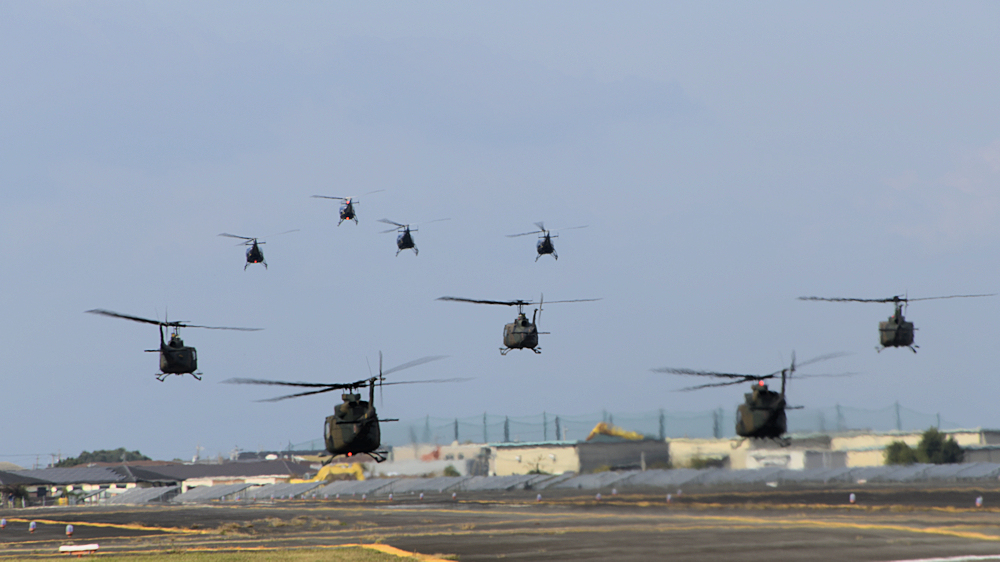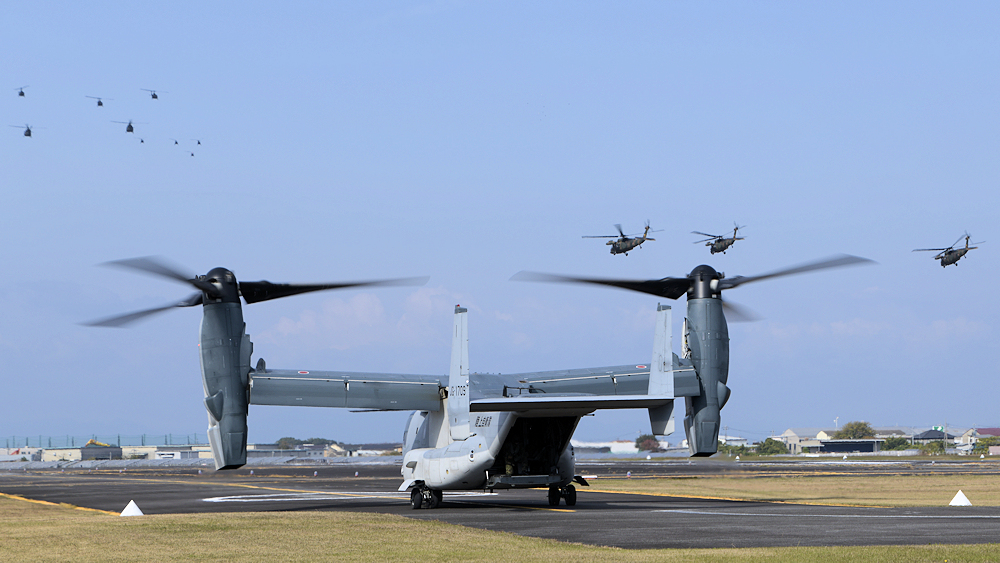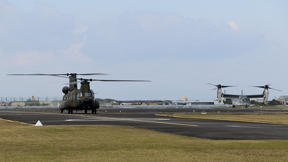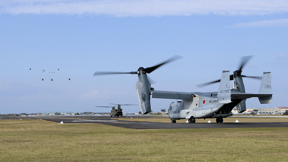 明野航空祭の予行を南側エンドより撮影。曇りがちではあるもののほぼ晴天。