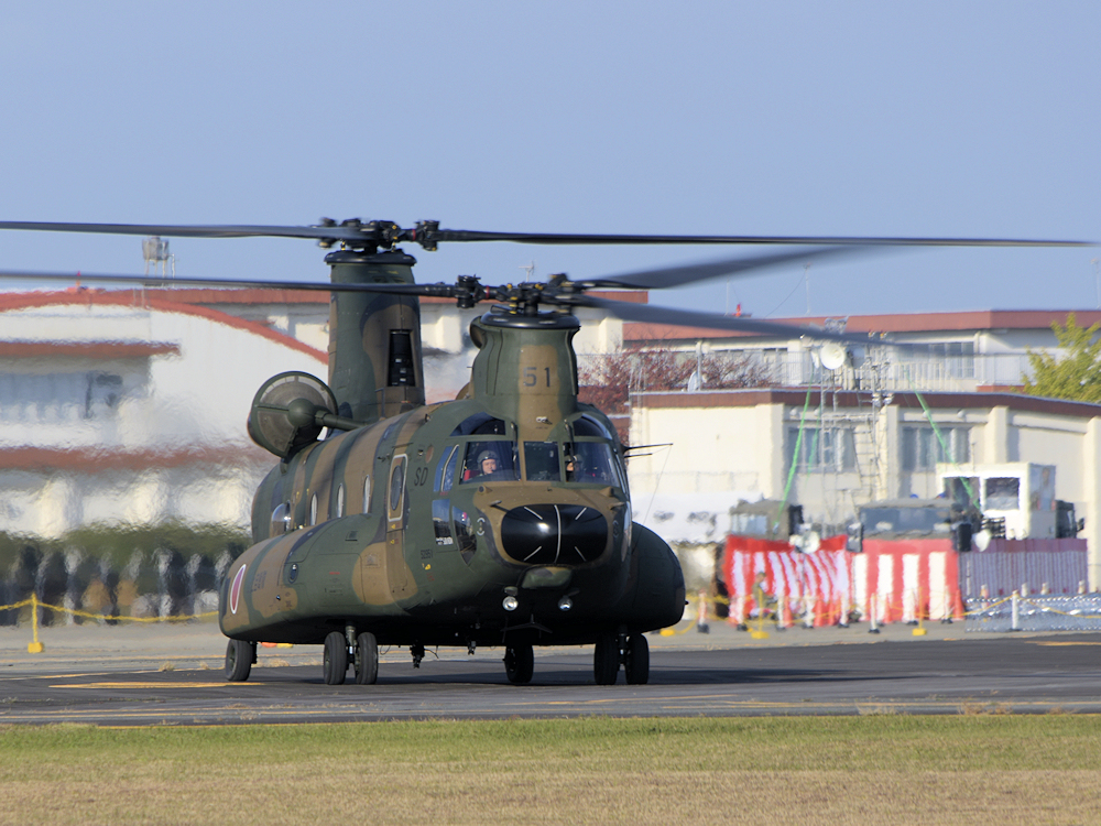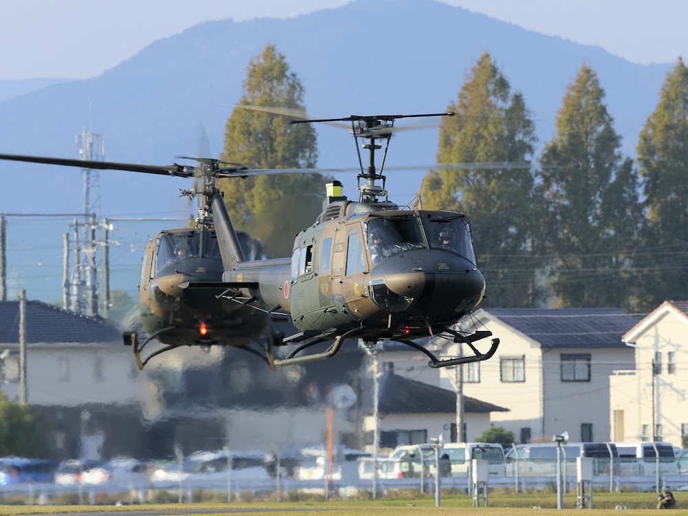 明野航空祭の予行を南側エンドより撮影。曇りがちではあるもののほぼ晴天。