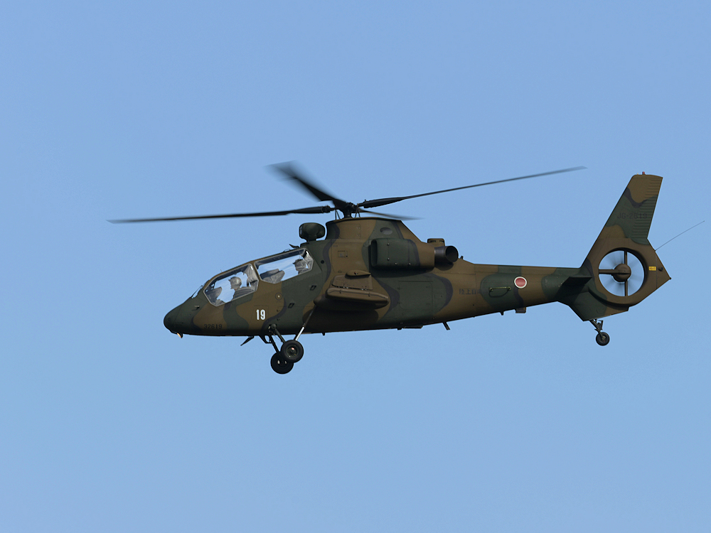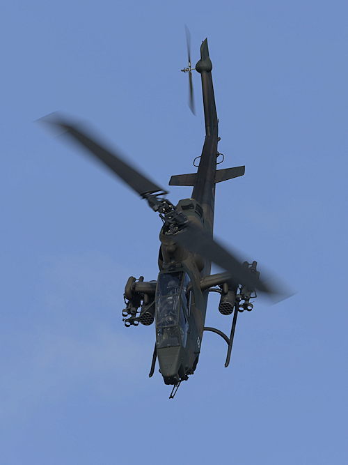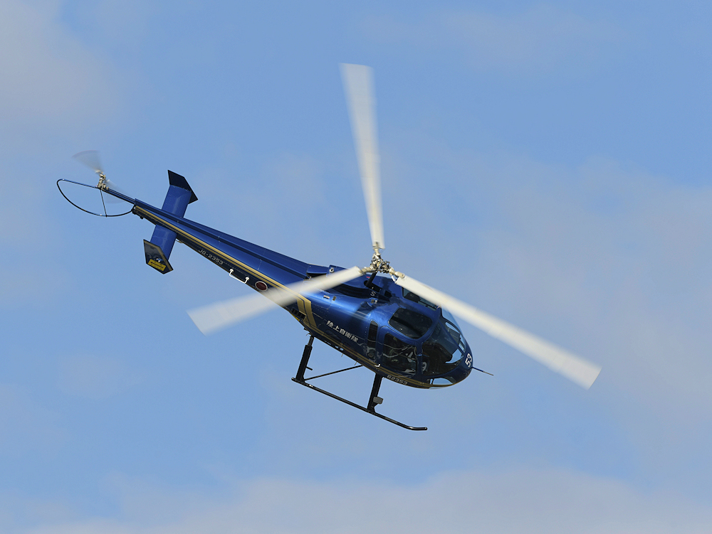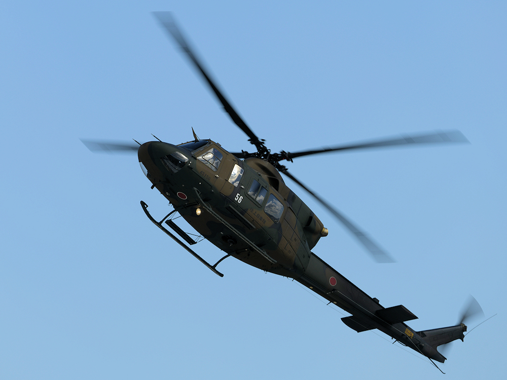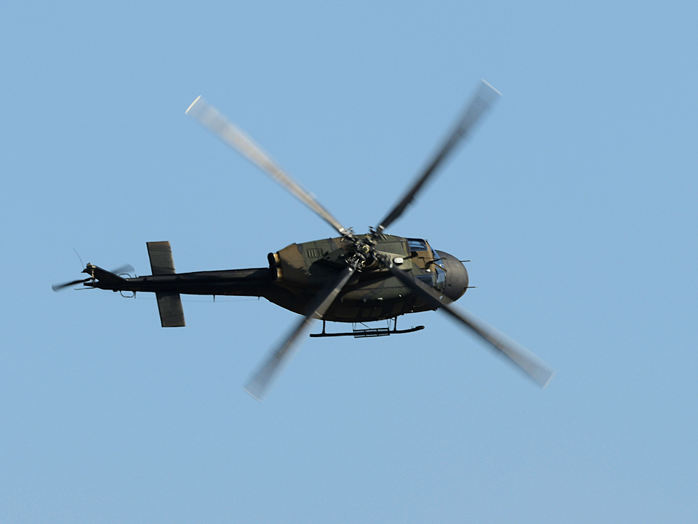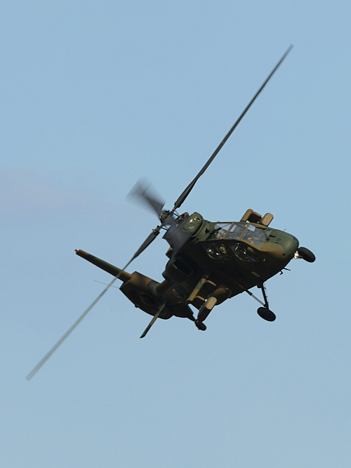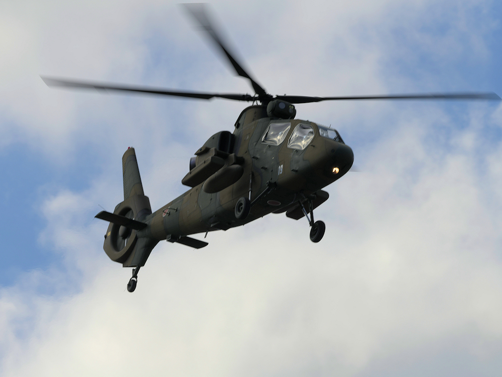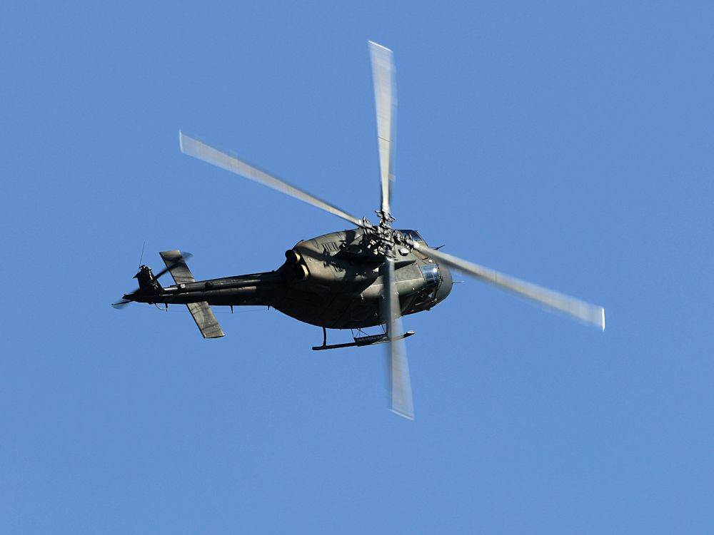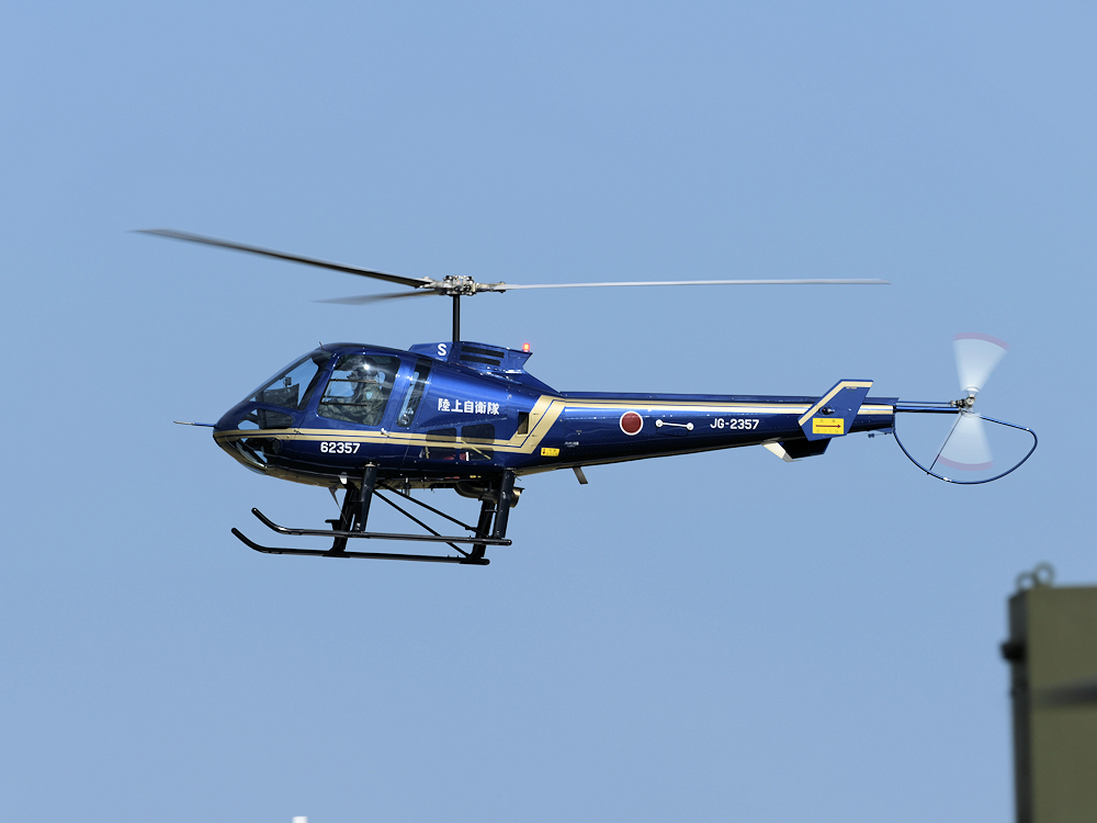 正面からトレイルで進入してきたTH-480B 4機が旋回しつつダイヤモンド編隊に移行。いわゆるチェンジ・オーバー・タ−ンです。