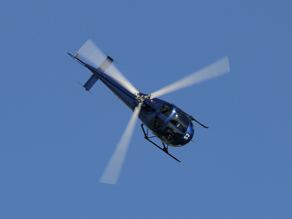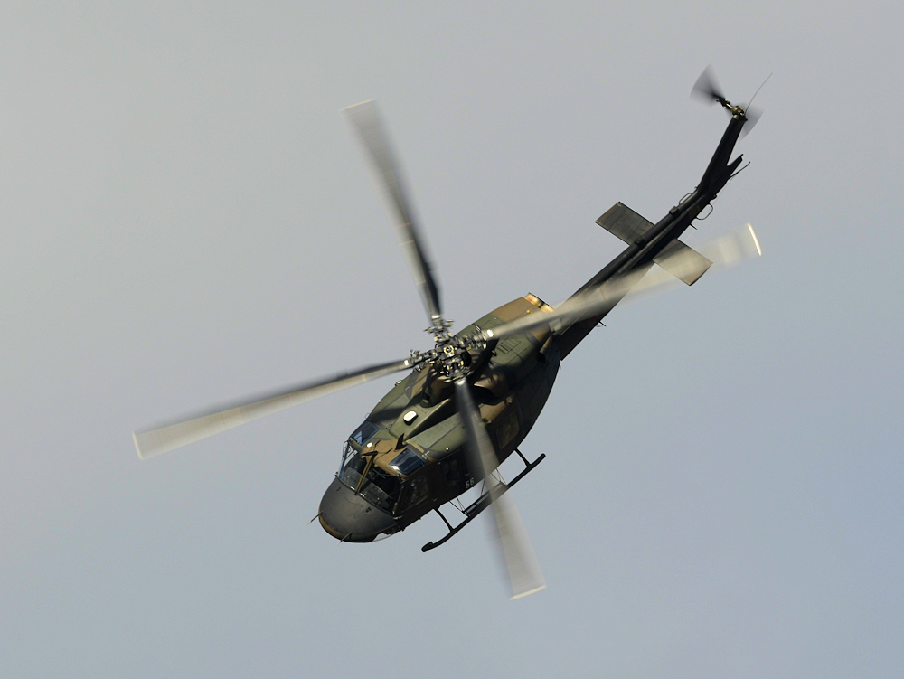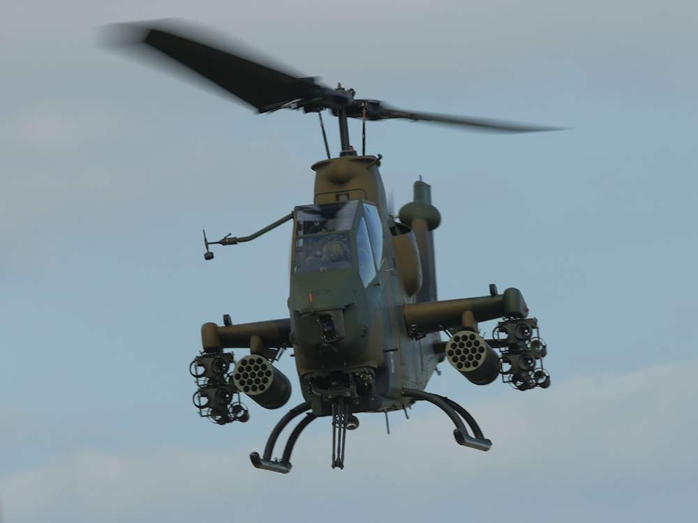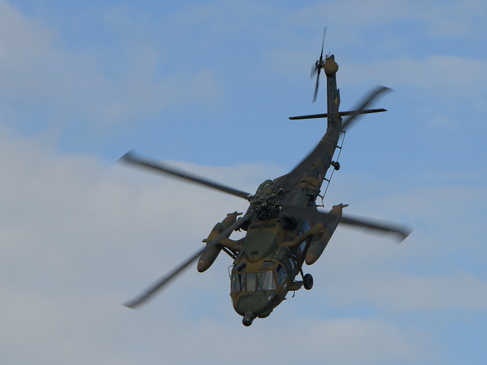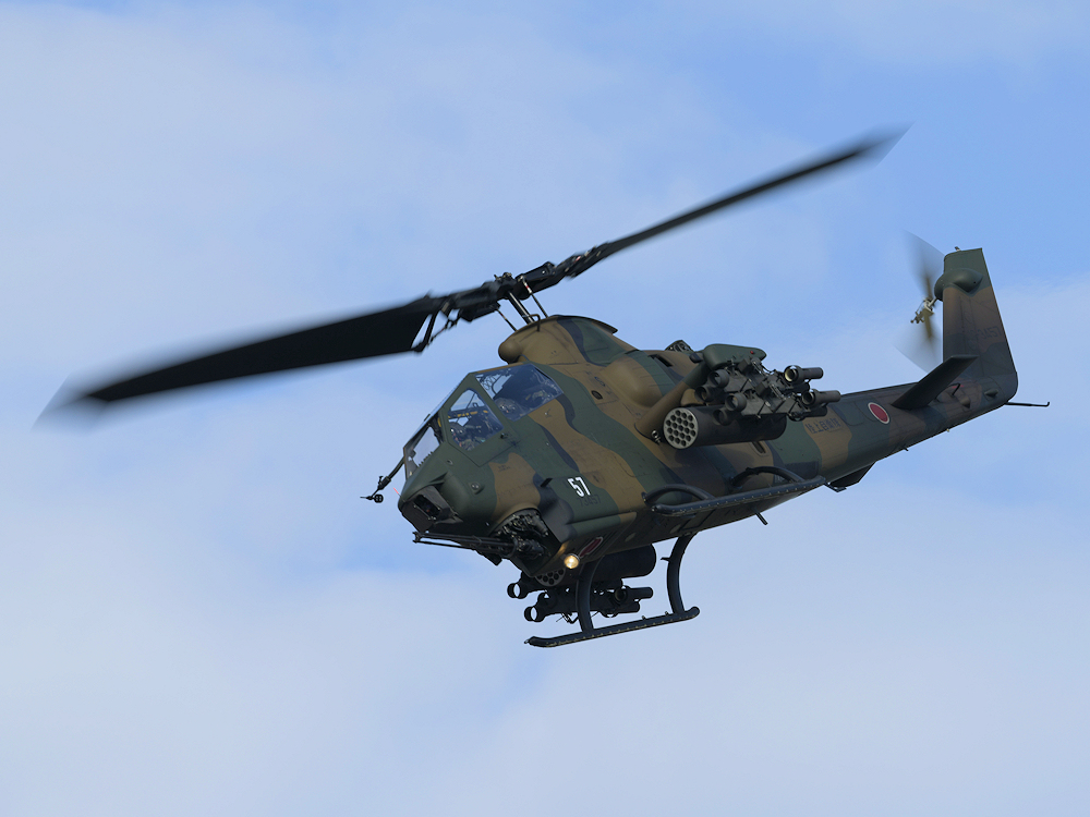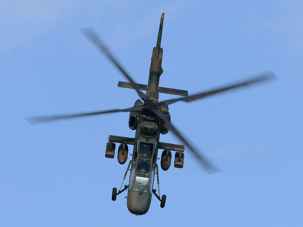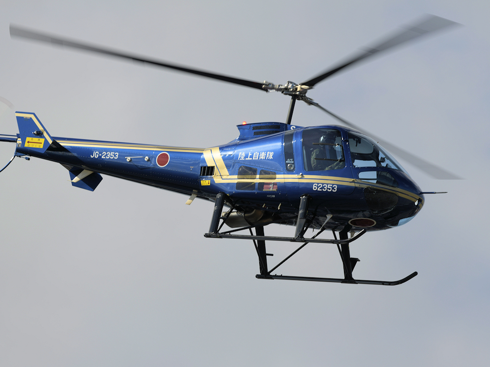 正面からトレイルで進入してきたTH-480B 4機が旋回しつつダイヤモンド編隊に移行。いわゆるチェンジ・オーバー・タ−ンです。