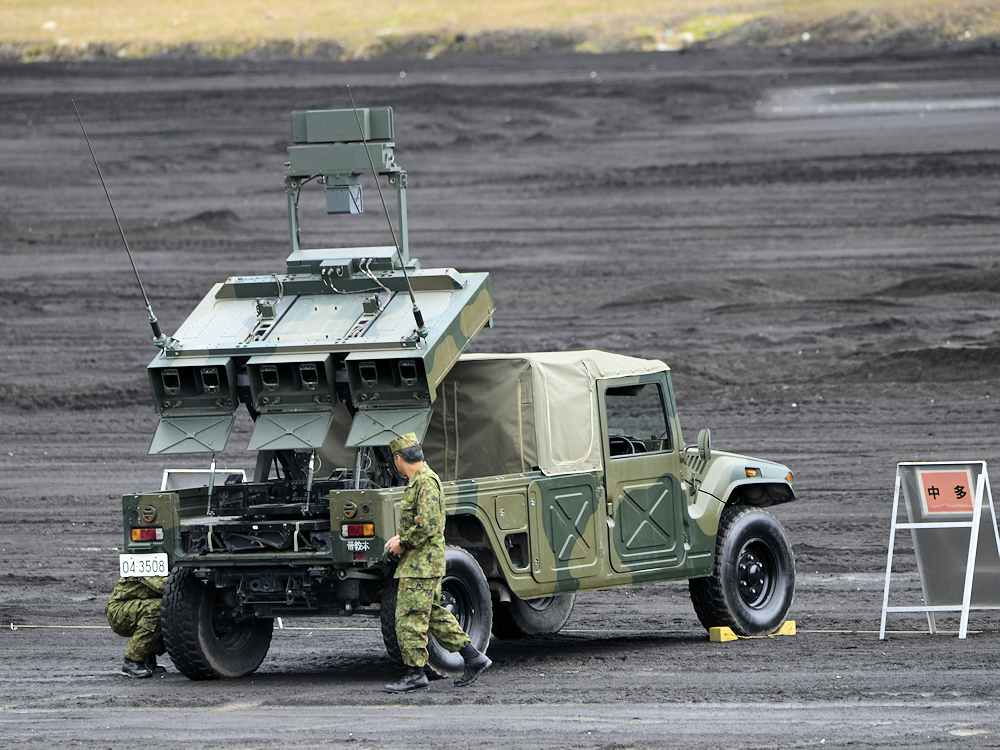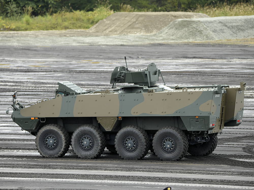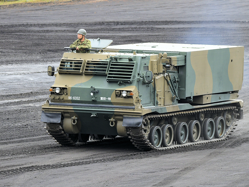 装備品展示はグランドで行われるので、訓練展示の車両がまず撤収。 |