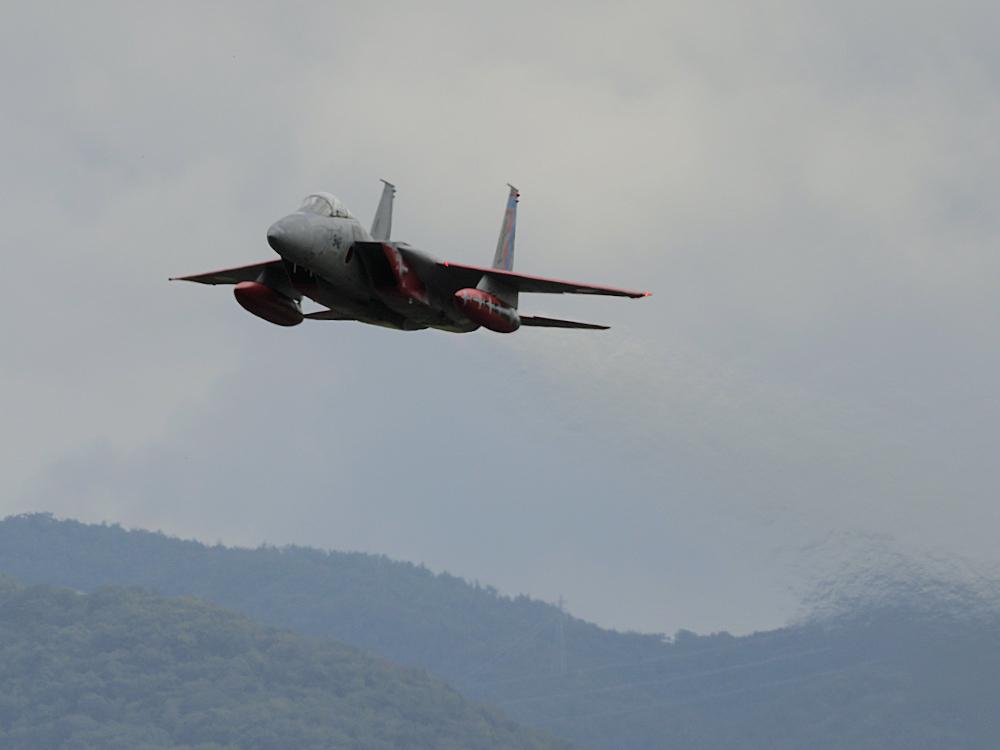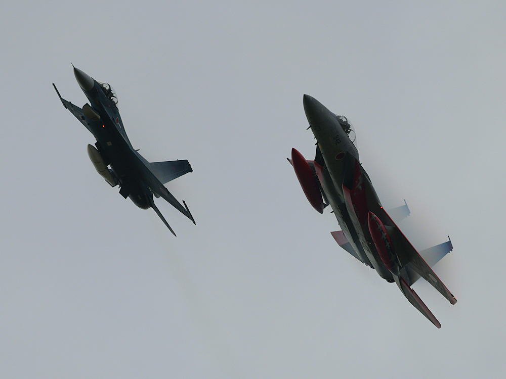 それでも、F-15、F-2による機動飛行展示はほぼ予定どおり実施されました。 |