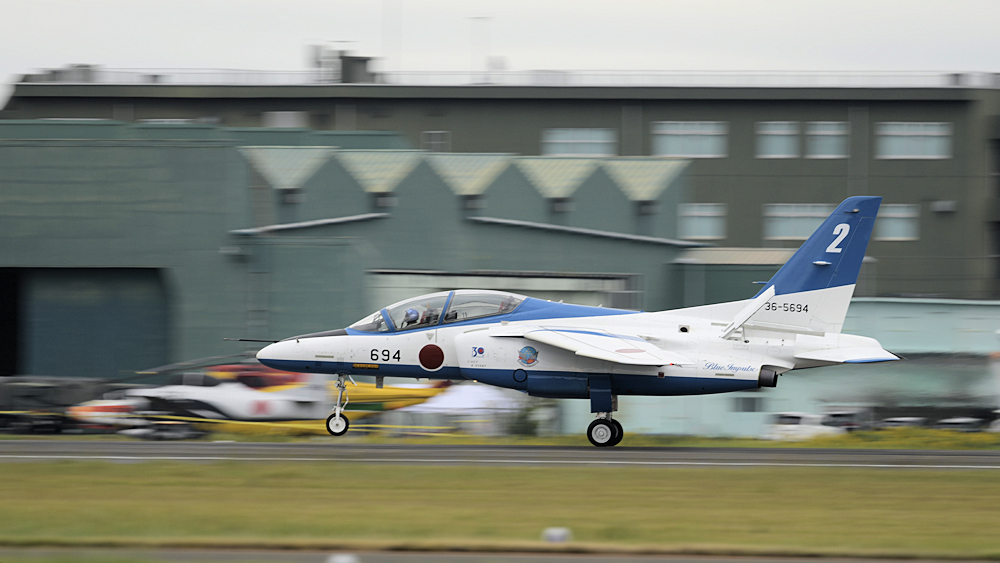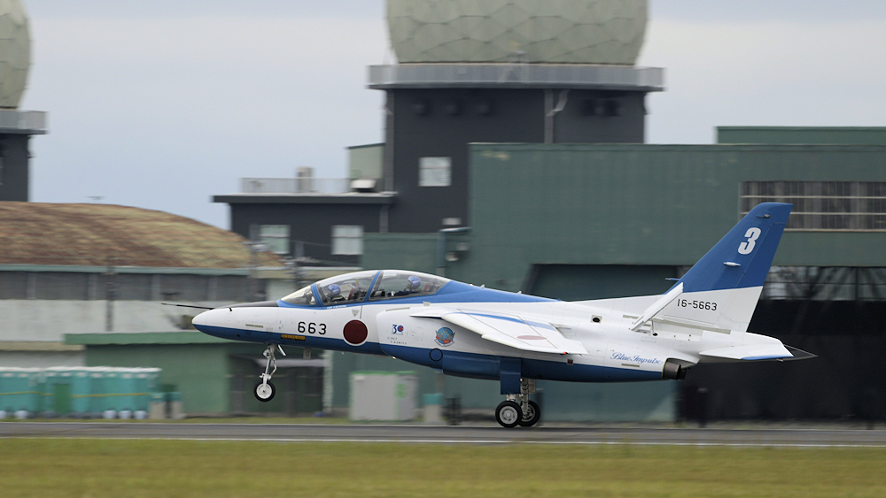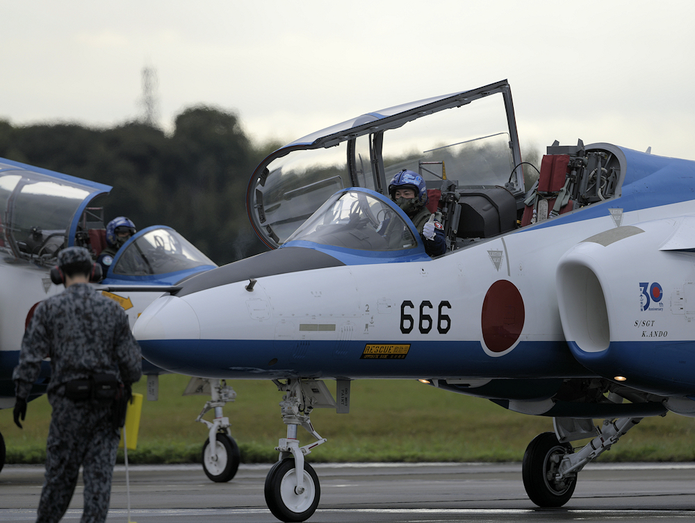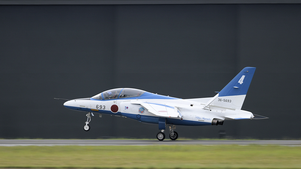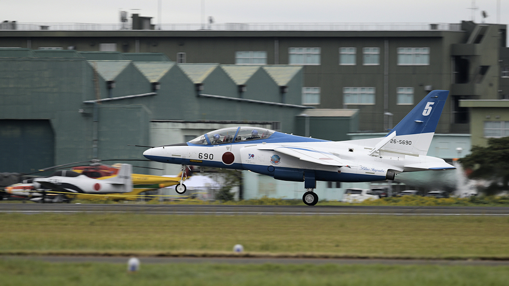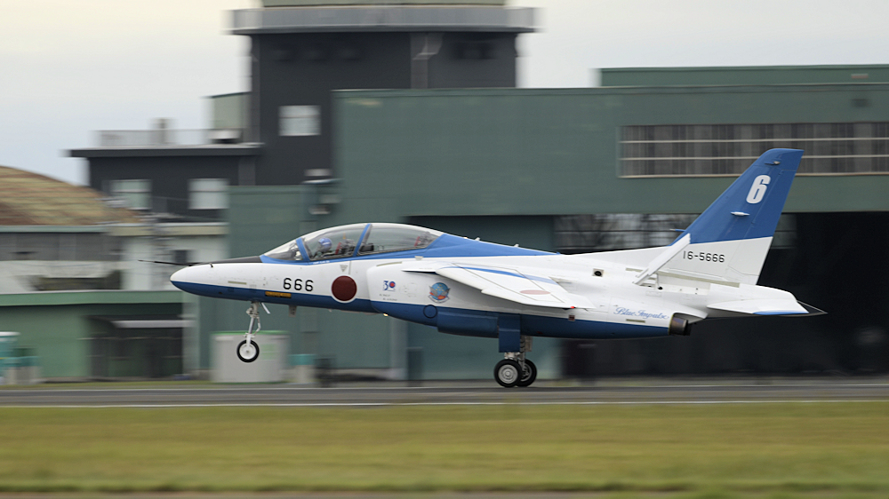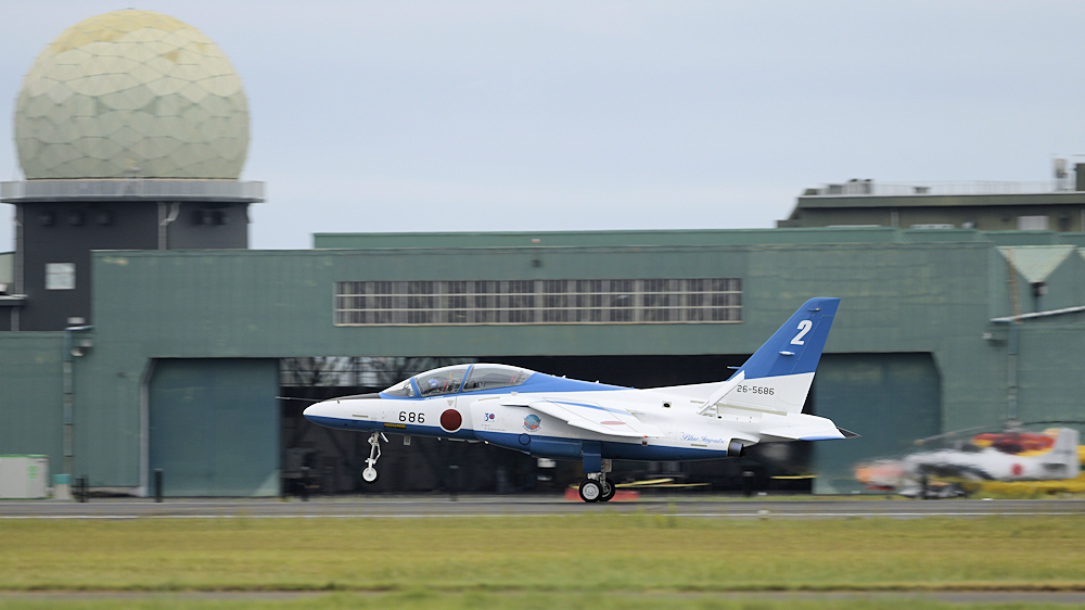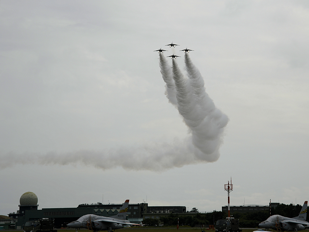 早朝、松島基地を発ったブルーインパルスはオープニングの合間を見て着陸。 |
