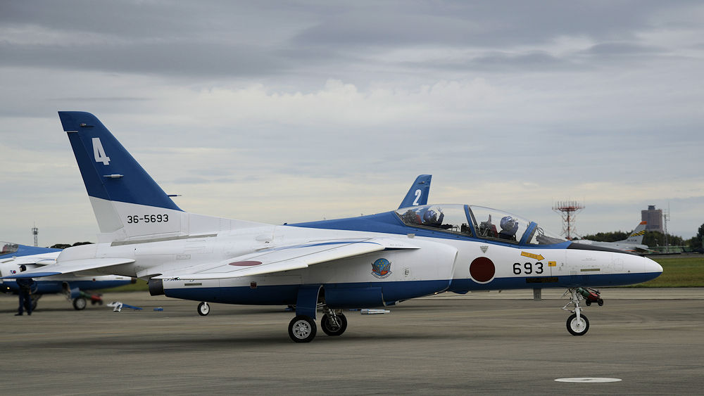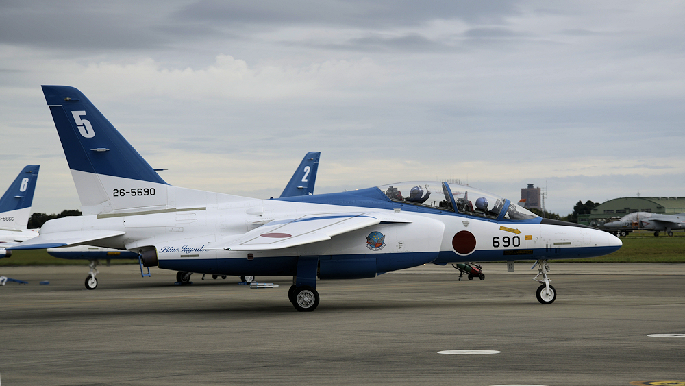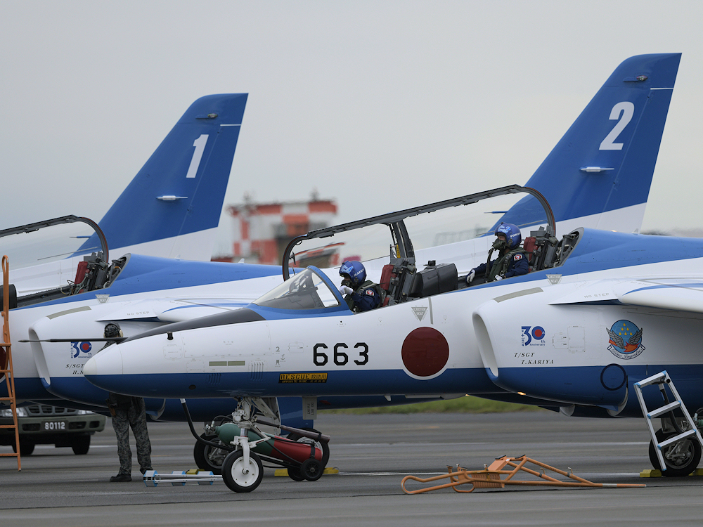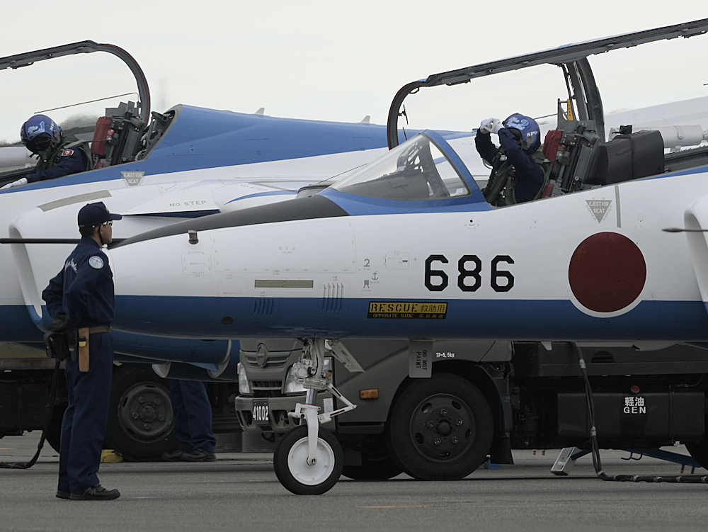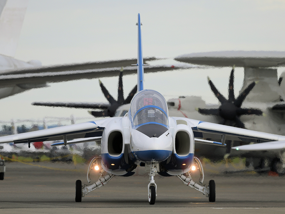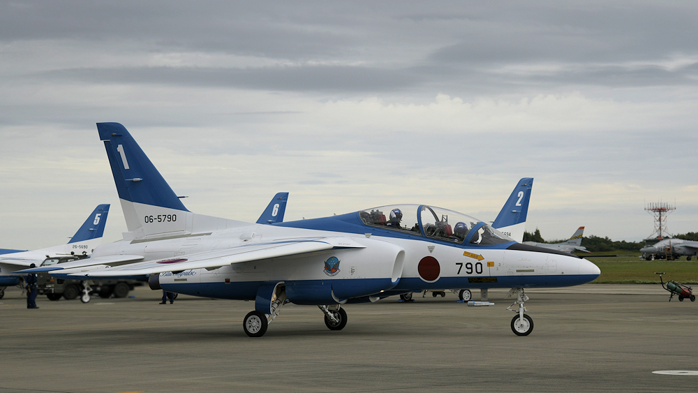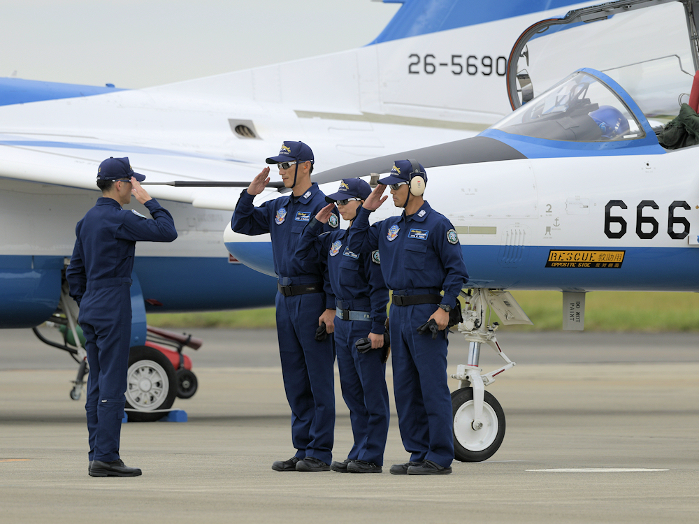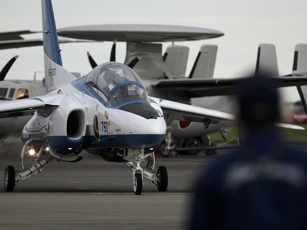 展示飛行を終えたブルーインパルスは整備員の待つ駐機位置に戻ってきます。 |