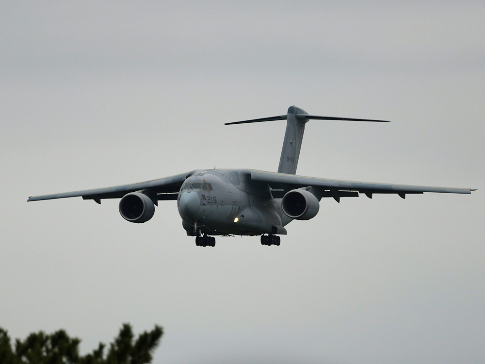 E-767の展示飛行終了後、整備員と支援機材をのせてC-2が飛来。