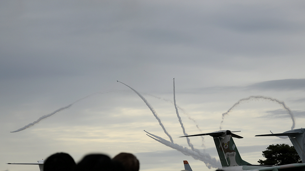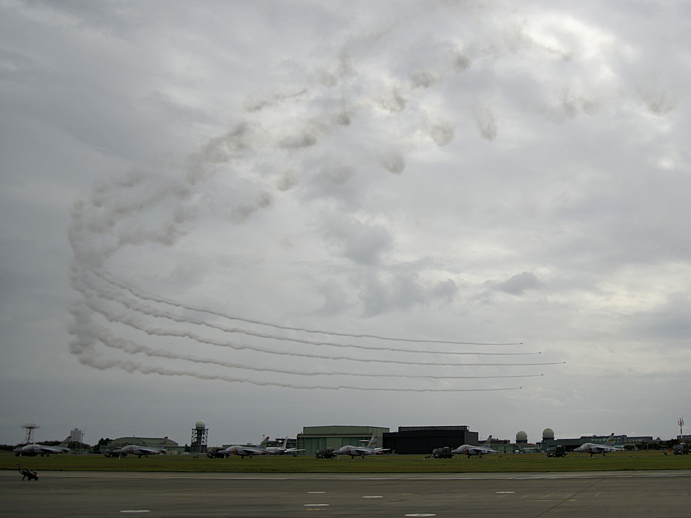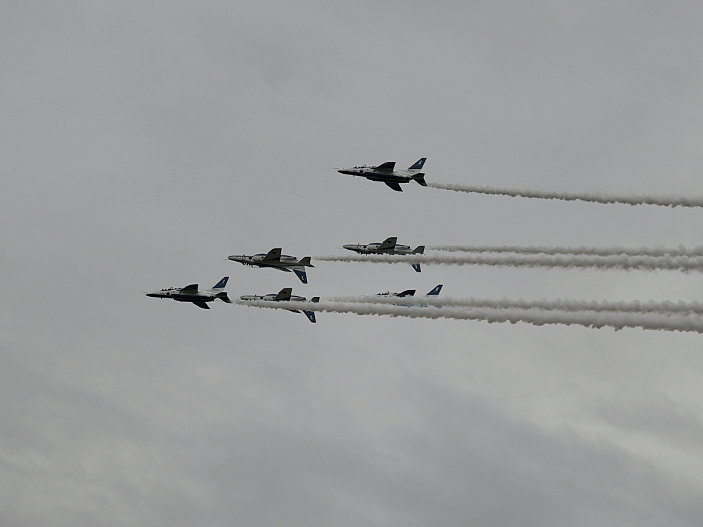 低い雲にもかかわらず4区分の展示飛行。