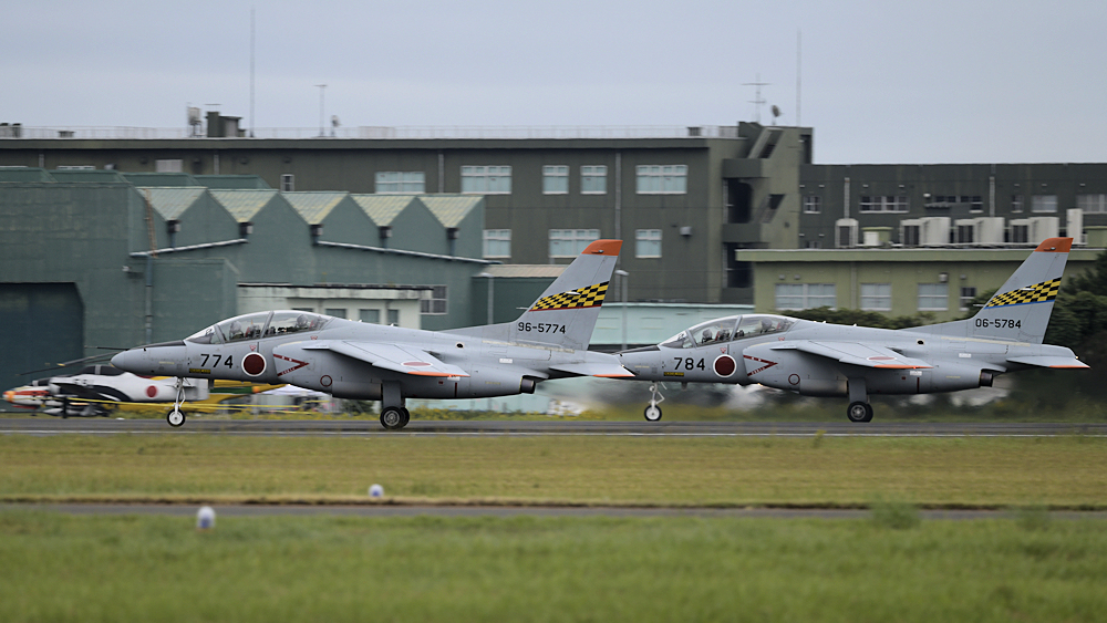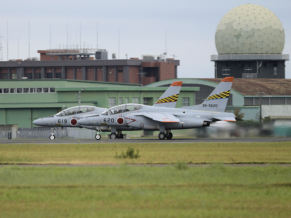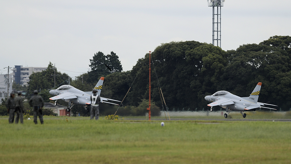 T-4 2機はオーバーヘッド・アプローチで着陸。