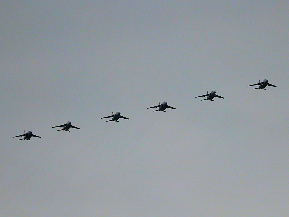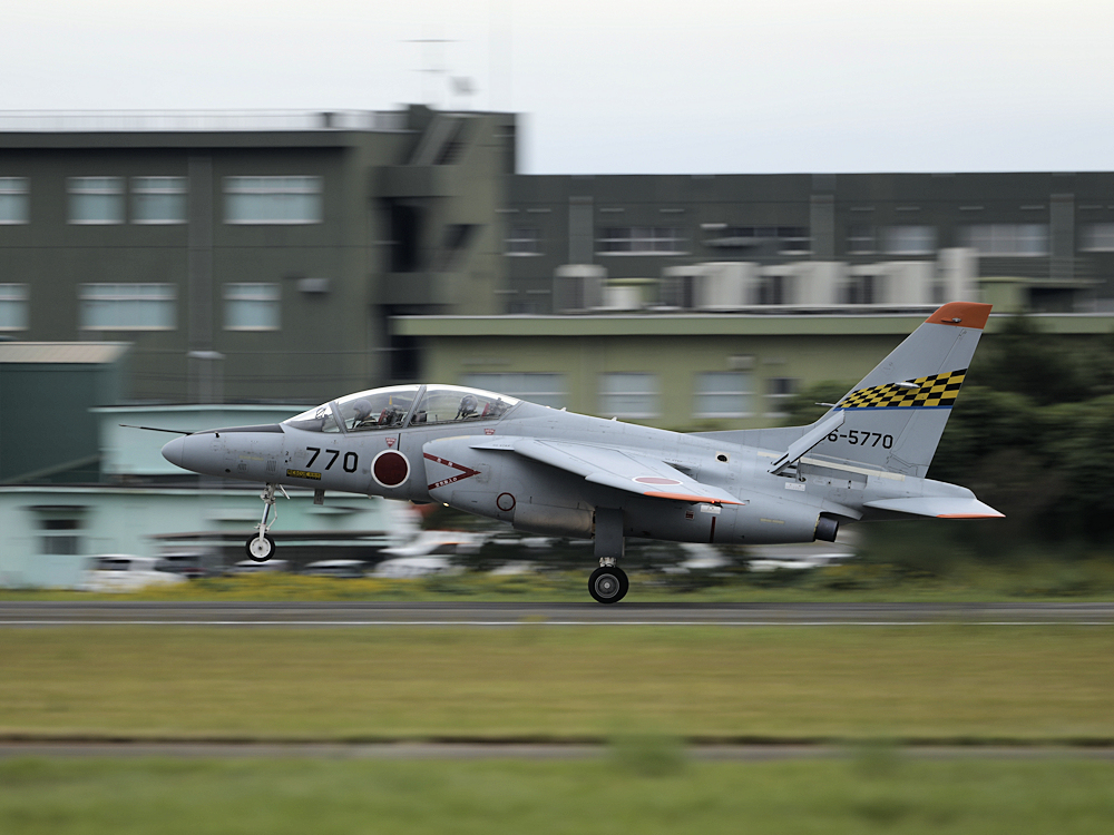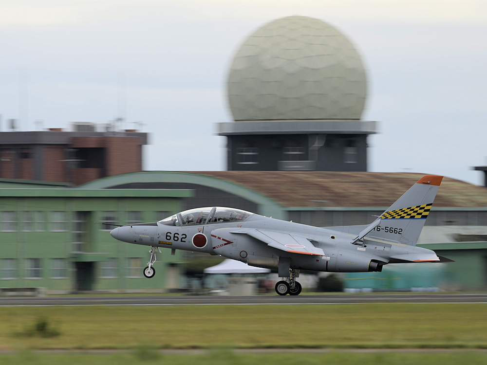 残るT-4は6機のエシュロン隊形で進入し、編隊解散して着陸体勢へ。