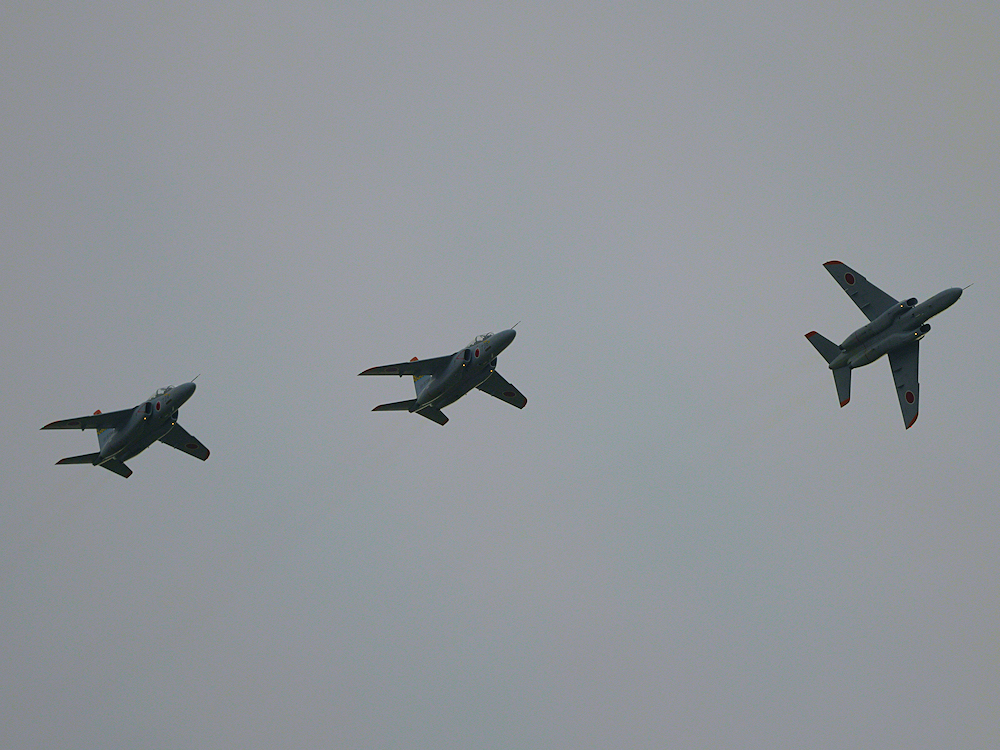 離陸後、洋上で編隊をととのえて、T-400を先頭にした傘型隊形で航過。