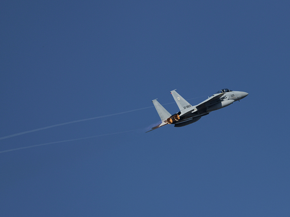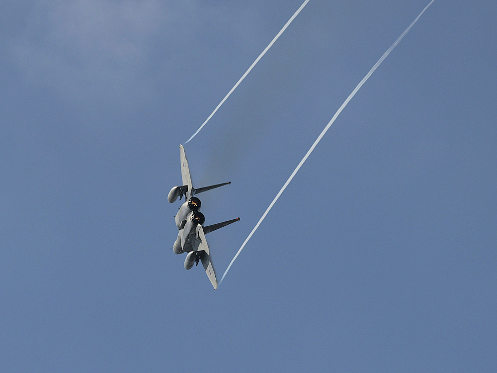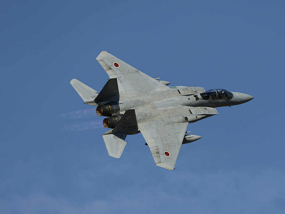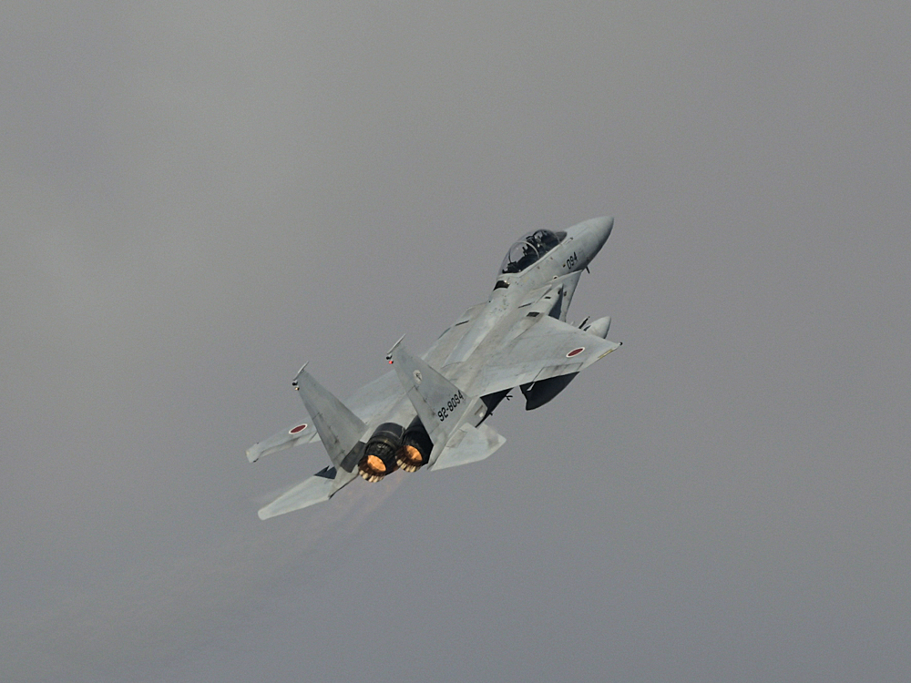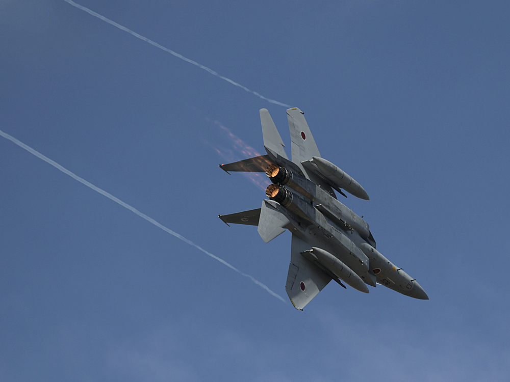 小松基地第303飛行隊のF-15J、DJが気合いの入った機動飛行。