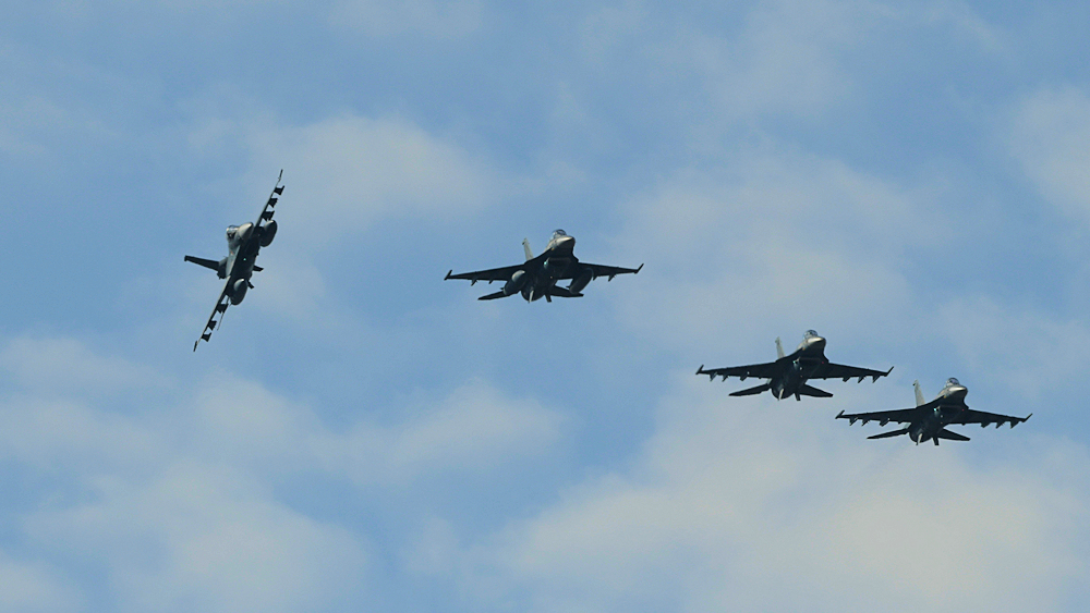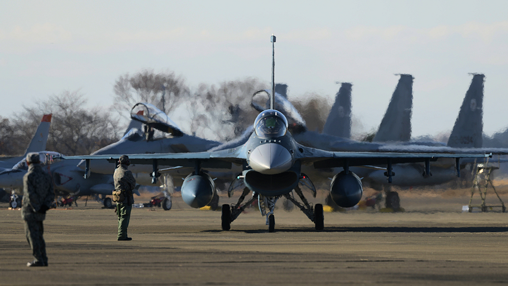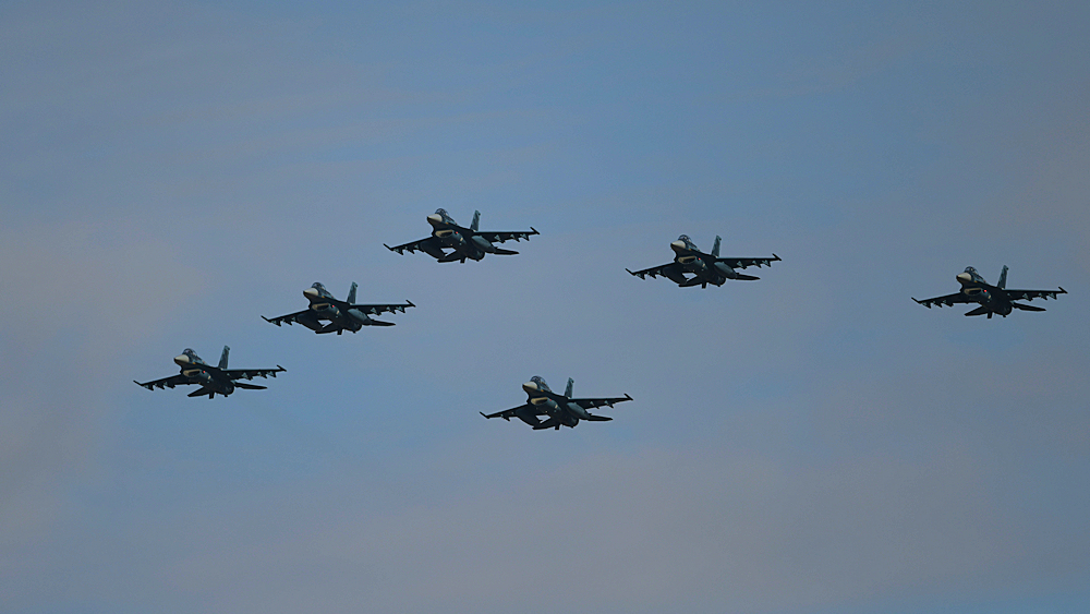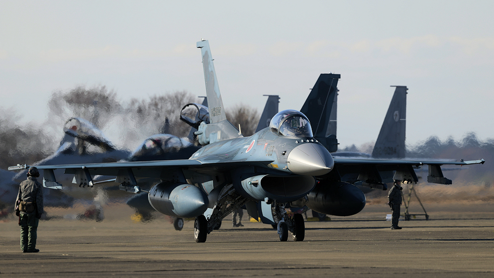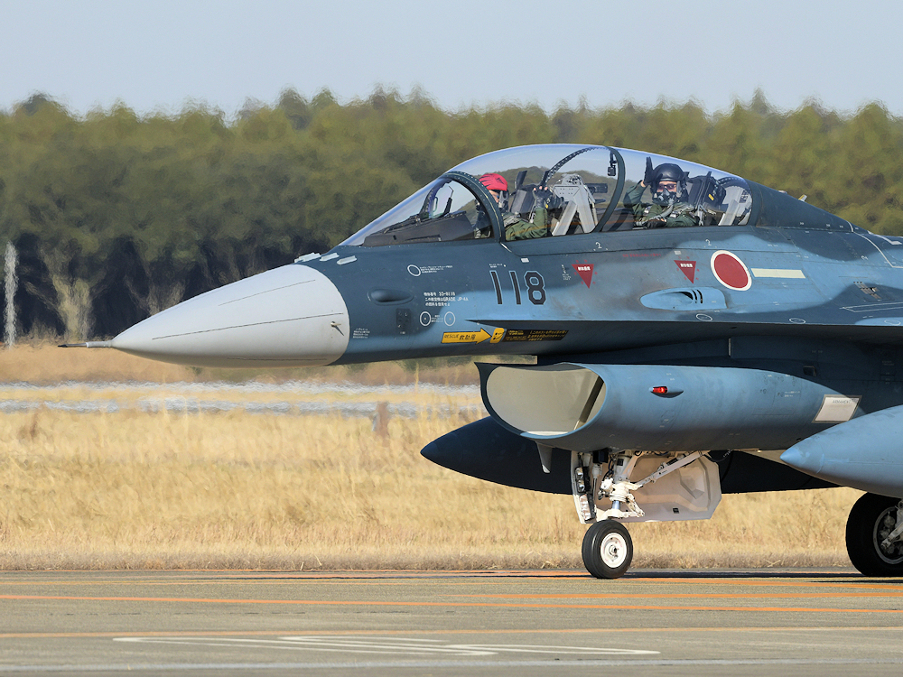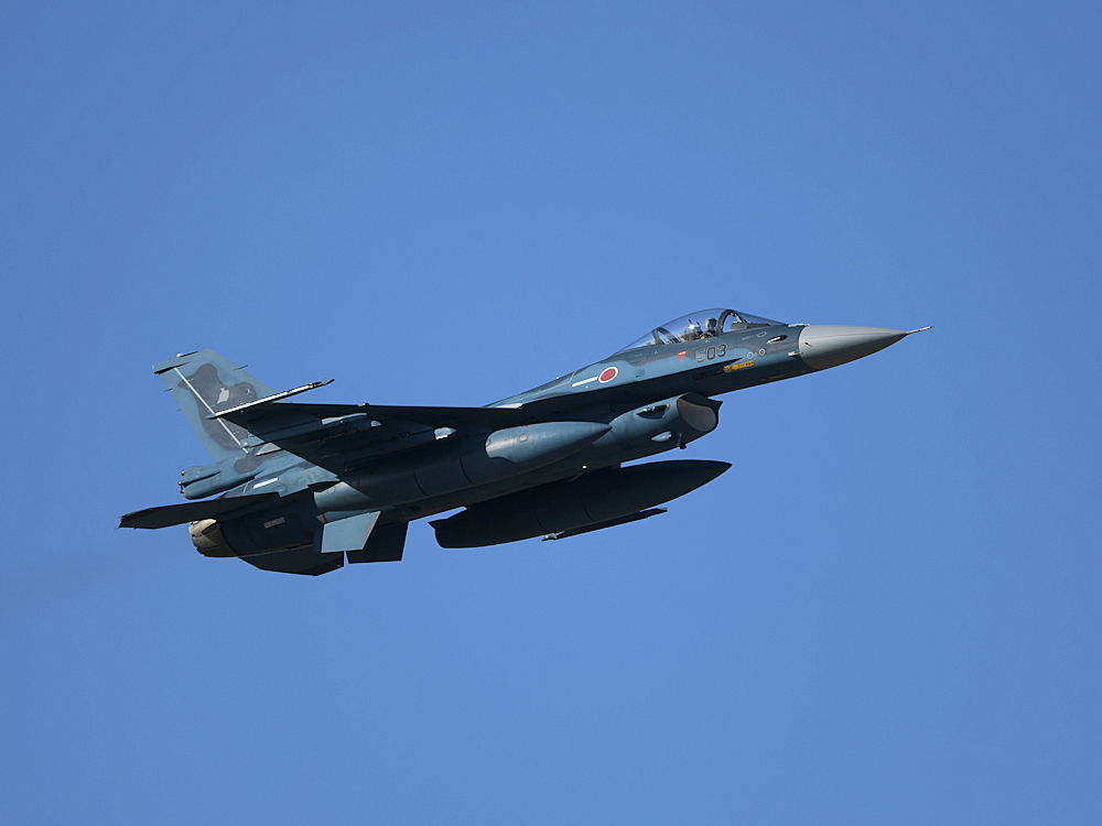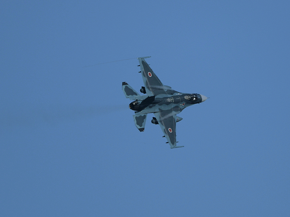まずは天候確認のためF-2A 2機が離陸。この2機は天候確認後、後続のオープニング・フライト編隊に合流します。 |