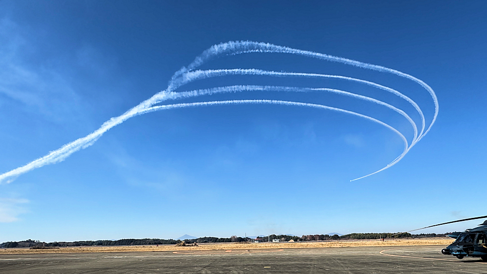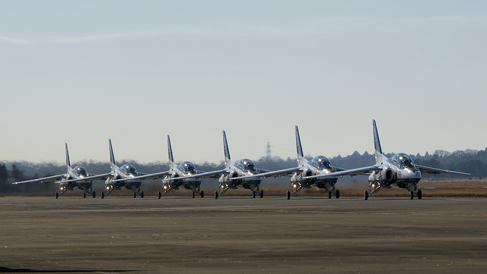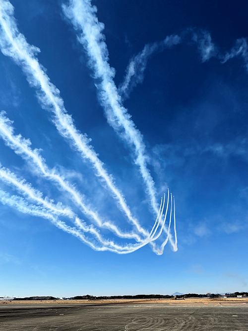 演技を無事終了し、着陸したブルーインパルスは駐機位置に戻ります。 |