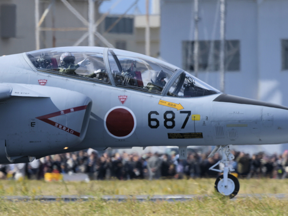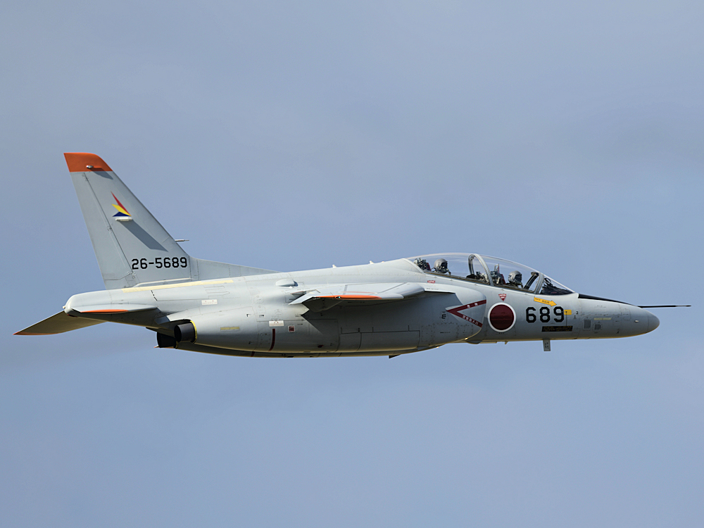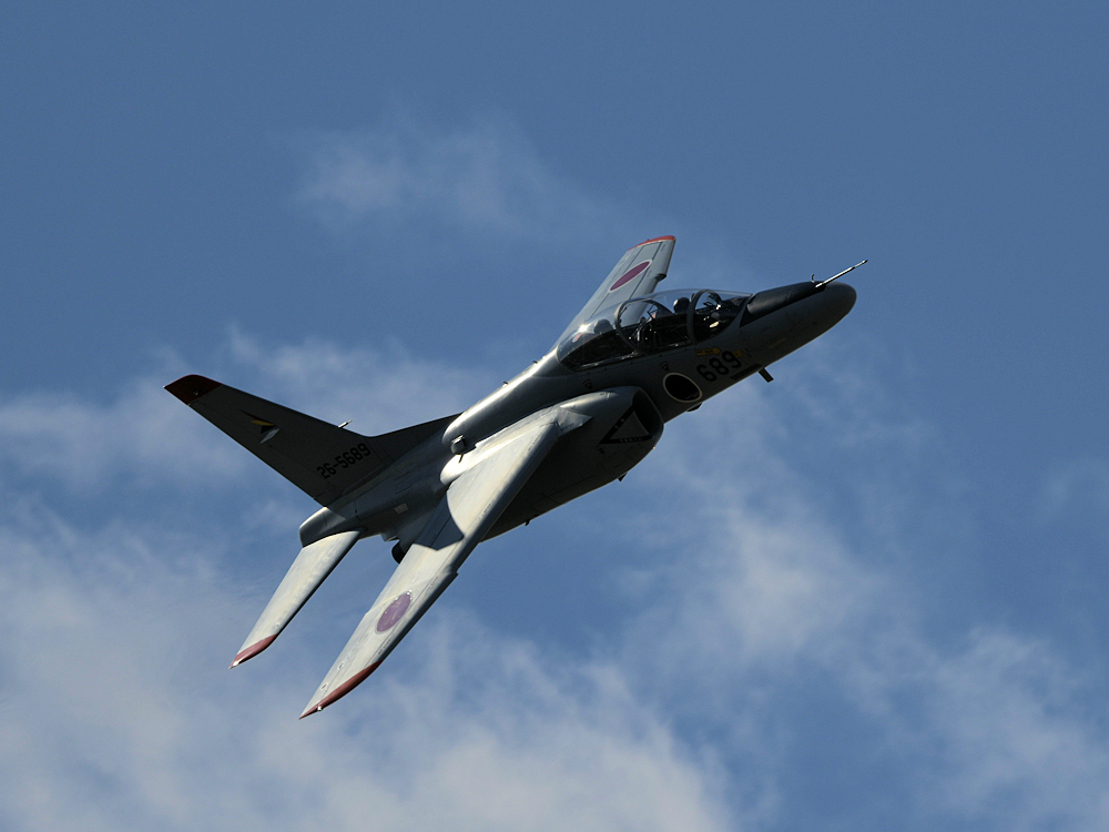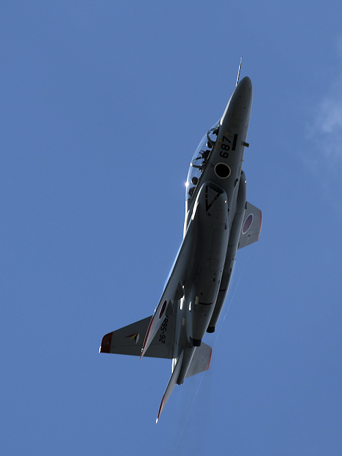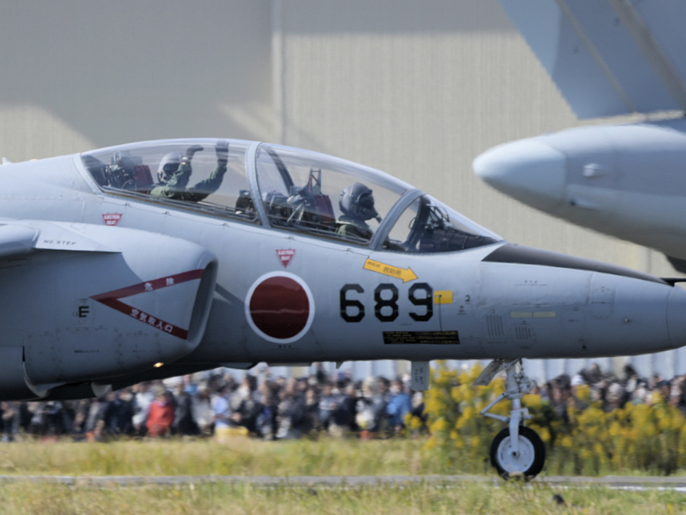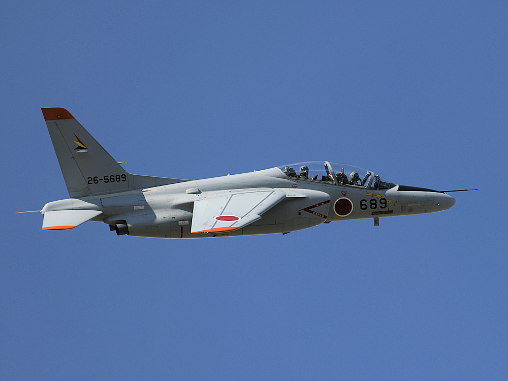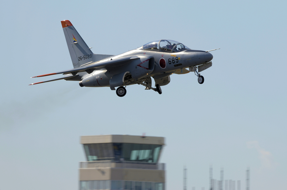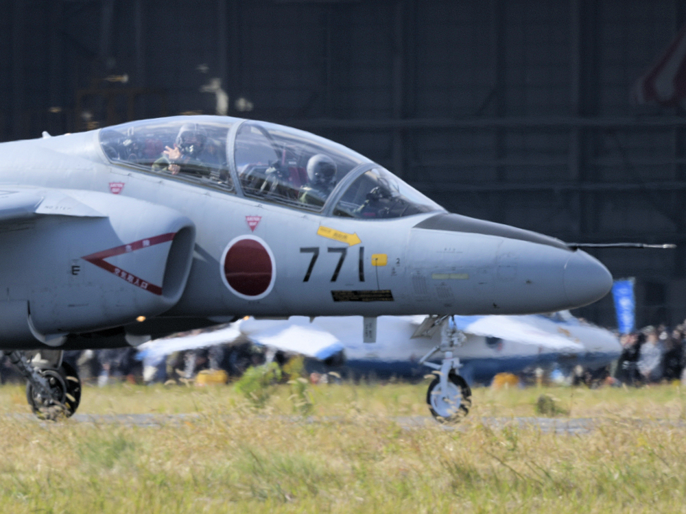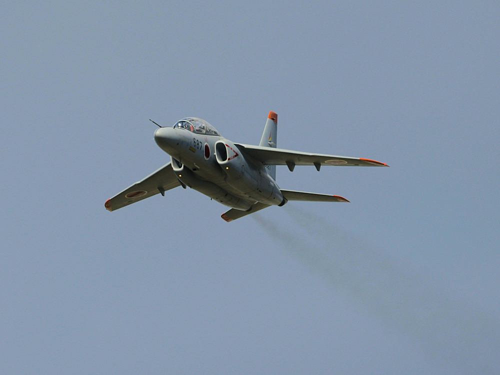司令部支援飛行隊のT-4 3機が展示飛行。